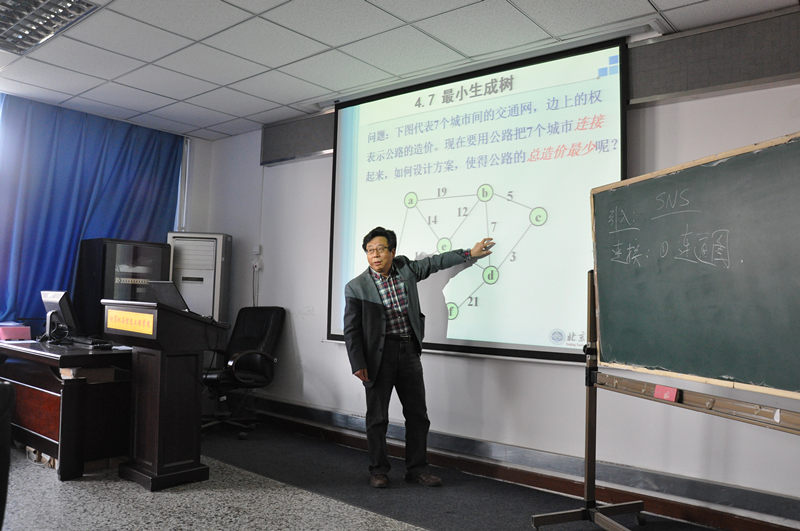 姜同強(qiáng)教授以新媒體介入和學(xué)生興趣為切入點(diǎn),由點(diǎn)到面,層層遞進(jìn),用生動的舉例和動畫展示了離散數(shù)學(xué)中圖論的概念和知識點(diǎn),精彩的示范課贏得了大家熱烈的掌聲。他還結(jié)合自己多年的任教體驗(yàn)談體會,希望青年教師端正教學(xué)態(tài)度,熱愛本職工作,用心對待每一位學(xué)生。