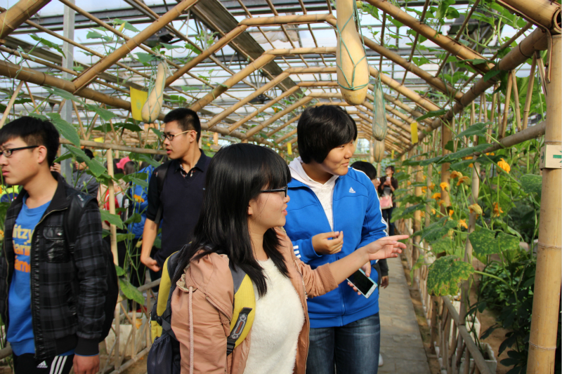 10月23日下午,《思想道德修養(yǎng)和法律基礎(chǔ)》教研室組織學(xué)校各學(xué)院近200余名大一學(xué)生前往“中國地?zé)岬谝淮?rdquo;——南宮實(shí)踐基地,開展主題為“走進(jìn)生態(tài)農(nóng)村、體驗(yàn)生態(tài)經(jīng)濟(jì)、感悟生態(tài)文明”的實(shí)踐課教學(xué)活動。活動中,學(xué)生們分組參觀了南宮之路展、地?zé)峥破照埂⒛蠈m溫室植物館。在講解員細(xì)致的講解中,同學(xué)們對南宮發(fā)展之路有了更為直觀的感受,對黨的政策和集體經(jīng)濟(jì)發(fā)展有了更為深刻的認(rèn)識。
