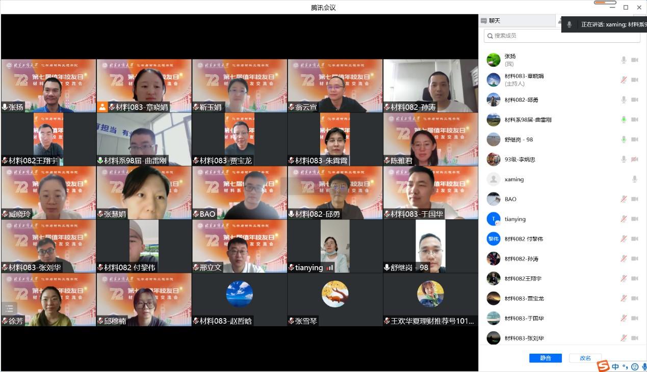 化學與材料工程學院召開材料科學與工程系校友交流會,邀請校友相聚云端。呂東燕、學院領導、教師代表等44人參加會議。材料系主任張揚教授介紹了該系的發展建設成果,校友們在逐一介紹后,圍繞著母校和學院教學、科研、育人等熱點話題展開了討論,建言獻策,助力學校、學院發展。