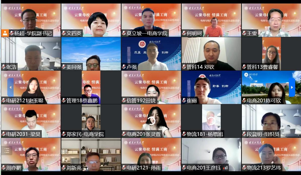 電商與物流學院開展了以“云聚母校,情滿工商”為主題的校友“云返?!被顒?,電子商務、物流管理、信息管理與信息系統、工業管理工程、倉儲運輸、經濟信息管理和管理科學與工程專業校友齊聚云端,共同觀看學校宣傳片,一同唱響校歌,重溫青春歲月,暢聊深厚情誼。左敏出席會議,何明珂等教師代表、校友代表,學院領導班子、青年教師代表及在校生代表等近200人參加活動。