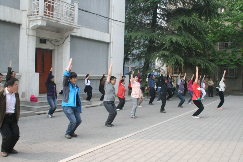 另據各分工會報送材料情況看,理學院以工會小組形式先分練后合練,材機學院利用工間操時間在戶外露臺練習,藝傳學院目前以良鄉和阜成路兩地形式組織練習;機關一分工會以處室為單位,有時聯合相鄰處室一起練習;機關二分工會充分利用上、下午的課間操時間開展訓練;圖書館各科室堅持廣播操練習,大力倡導健身活動。