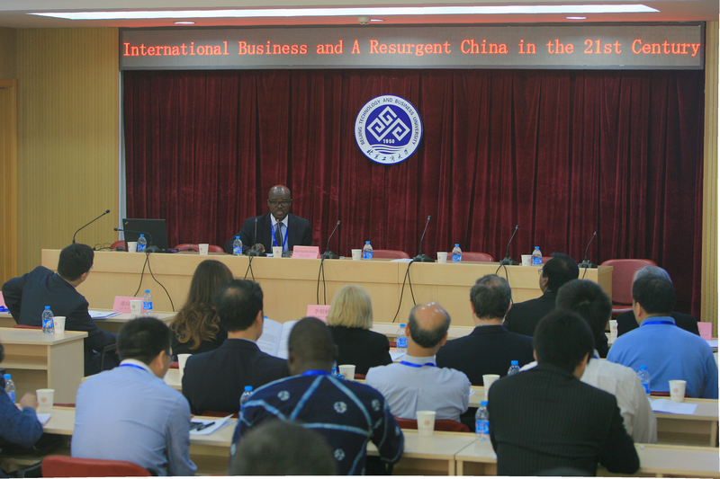 5月21日至22日,由美國商務管理學會主辦、我校和天津外國語大學共同承辦的2014年“21世紀的國際商務與中國的復興”國際研討會在阜成路校區舉行。譚向勇校長、李朝鮮副校長出席此次國際研討會;財政部副部長朱光耀、國務院發展研究中心市場經濟研究所副所長王微、京東商城政策研究室主任張建設、美國昆尼皮亞克大學副校長保羅•澤拉扎教授(Prof.Paul Tiyambe Zeleza)作為會議特邀嘉賓進行主旨發言。會議由我校國際交流與合作處處長何明珂主持。