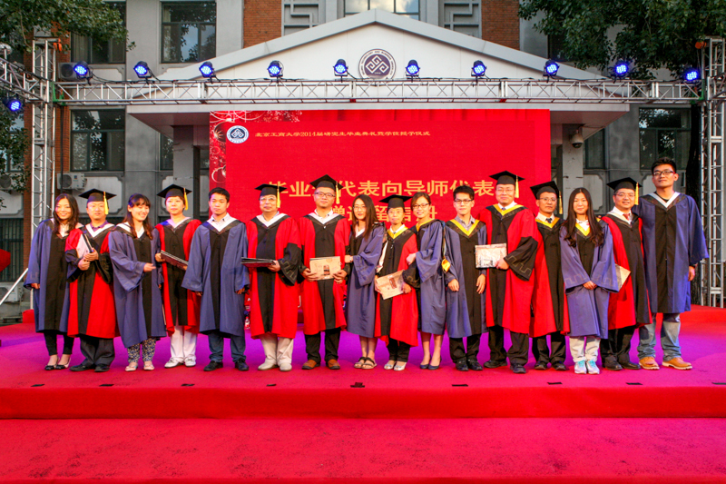 雨后的天空格外晴朗。晚上19點整,畢業典禮在雄壯的國歌聲中拉開帷幕。孫寶國副校長宣讀了《北京工商大學關于準予2014屆碩士研究生畢業的決定》和《北京工商大學關于授予2014屆畢業研究生碩士學位的決定》,謝志華副校長宣讀了《北京工商大學關于表彰2014屆優秀畢業研究生的決定》。今年我校共有62名優秀研究生被評為校級優秀畢業生,其中19人被推薦為市級優秀畢業生。