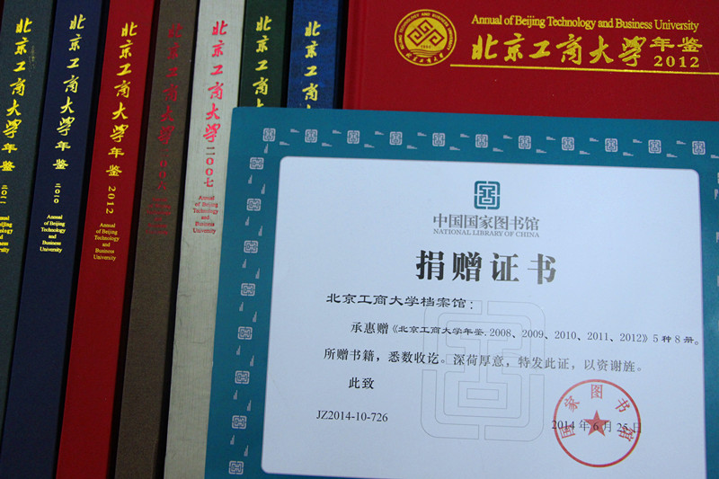 10月16日,北京市地方志編纂委員會辦公室在北京市方志館召開首屆北京市年鑒綜合質量評比頒獎會。我校參評的《北京工商大學年鑒(2012卷)》榮獲“北京年鑒獎”。學校年鑒還被國家圖書館收藏,并獲得國家圖書館授予的捐贈證書。