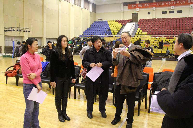 12月29日晚,“中國夢·工商情”元旦晚會彩排在良鄉(xiāng)校區(qū)文體館舉行。晚會總指揮黨委副書記盧思鋒親臨彩排現(xiàn)場指導(dǎo)。體育與藝術(shù)教學(xué)部、團(tuán)委、宣傳部、后勤管理處、保衛(wèi)處、工會、各學(xué)院及校學(xué)生會通力合作,力求為廣大師生帶來一場精彩的晚會。