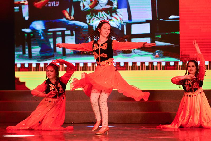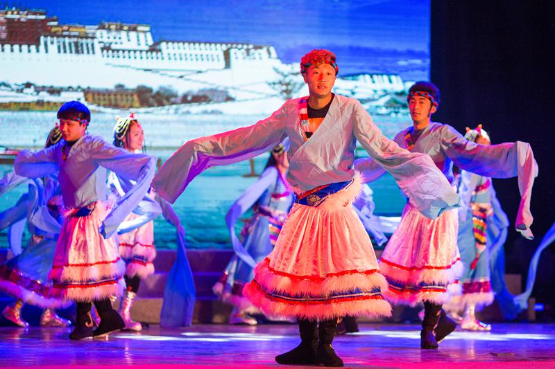 激情未退,身著白裙的舞蹈演員隨舒緩的音樂翩翩起舞,校舞蹈團帶來的《草原月夜》帶領觀眾走進曠遠幽靜的大草原。藍袍小伙的登場打破了現場的靜謐氛圍,豪邁昂揚的舞姿讓觀眾領略到了草原的大氣磅礴。來自藏族、哈薩克族、維吾爾族的同胞身著華麗漂亮的民族服飾,用優美曼妙的舞姿,展現著其獨有的民族風情。而《炫舞青春》表演則以動感的街舞,充分展現了同學們的青春活力。