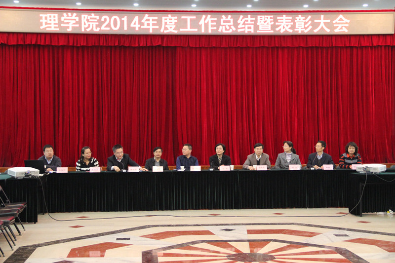 1月8日,理學院召開了2014年度總結表彰大會,總結2014年理學院的工作和取得的成績,表彰在教學和科研及社會工作方面做出突出貢獻的教師和集體,部署2015年工作。學校副校長李朝鮮、副校長張耘出席會議并講話。學校科技處處長楊有紅、人事處處長張曉堂、工會常務副主席田宏出席、學院領導班子成員及全體教職工參加會議。大會由黨總支書記祝鈞主持。