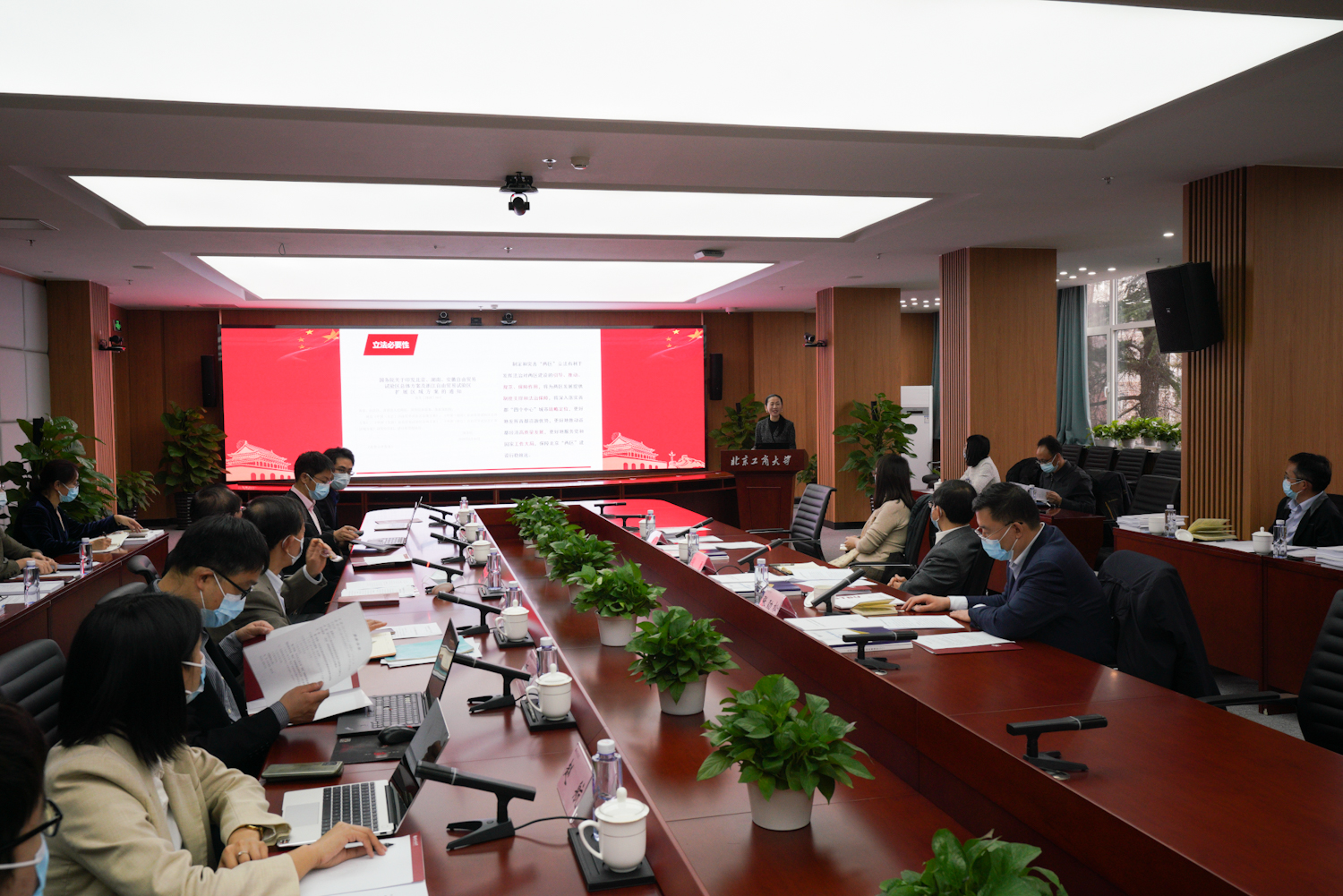 會上,殷勇副市長與我校“兩區(qū)”體制機制改革研究團隊座談交流“兩區(qū)”體制機制改革有關工作。學校“兩區(qū)”體制機制改革研究團隊負責人、法學院李晗副教授匯報研究工作情況,她圍繞推進法定機構試點、設立新型研究機構、完善激勵機制和容錯機制、完善評估考核和監(jiān)督機制等方面,針對“兩區(qū)”管理體制機制創(chuàng)新中的難點和痛點問題進行闡述;并代表學校作《以首善標準推動“兩區(qū)”“三平臺”建設 打造服務北京“高校樣板”》專題匯報,展示了我校服務“兩區(qū)”建設等方面的多項示范性成果。