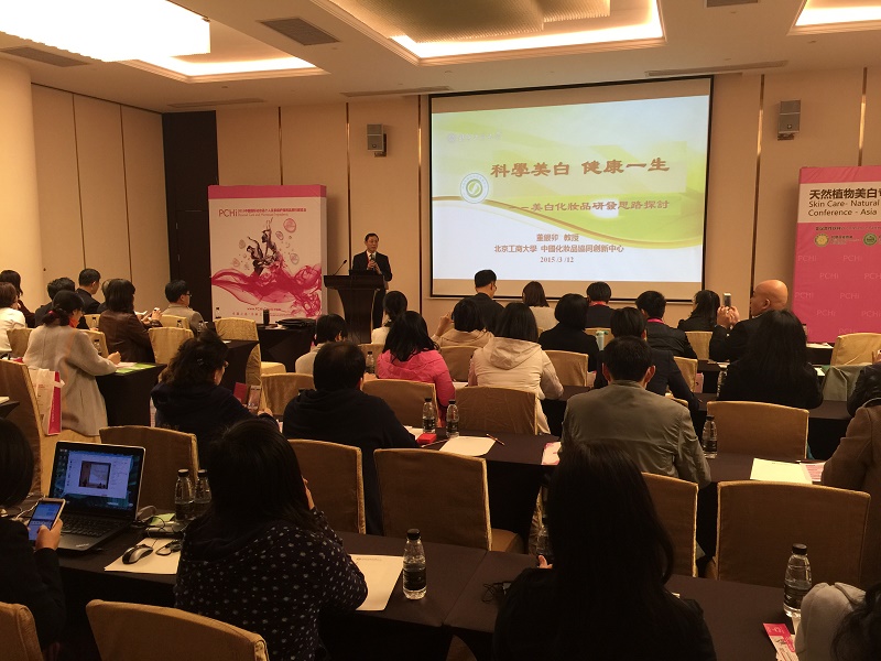 PCHi是國內化妝品原料領域首屈一指的展會,我校理學院四位專家教授受邀參與,同時,我校中國化妝品研究中心與中國化妝品協同創新中心、北京日化協會與國藥勵展展覽有限責任公司共同舉辦了“2015天然植物美白專題亞洲學術論壇”、“2015天然有機化妝品發展趨勢論壇”,擴大了我校在化妝品領域的影響和作用。