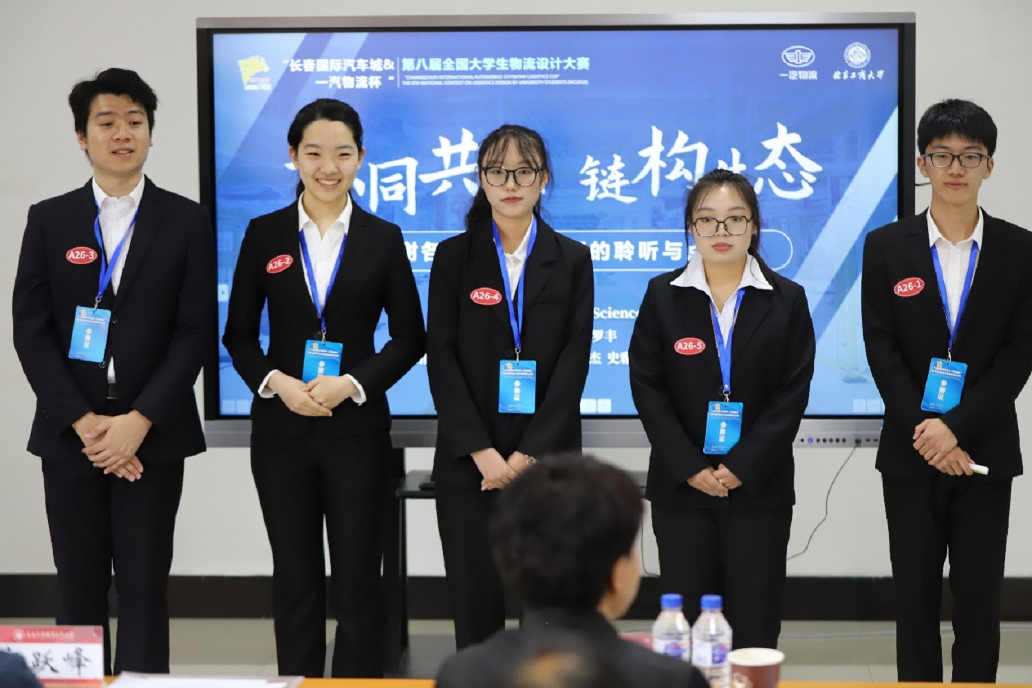 在本屆大賽中,由商學院數字運營學系盧強教授、羅豐博士擔任指導教師;供應鏈管理專業蘇柯木,物流管理專業史雅芹、司馬曙慧,計算機與人工智能學院(網絡空間安全學院)信息管理與信息系統專業張宇瑄,經濟學院金融科技專業潘智杰5位同學組成的“北京工商大學Logistics Science隊”,憑借出色的方案設計、精彩的陳述展示及優秀的答辯交流表現,榮獲大賽一等獎。同時,本次比賽設置的“人才直通計劃”為賽事中表現突出 的選手頒發了“校園招聘直通卡”,選手將在畢業前擁有進入一汽物流實習的機會,免去簡歷篩選和初試環節,我校五位參賽隊員均成功入選。