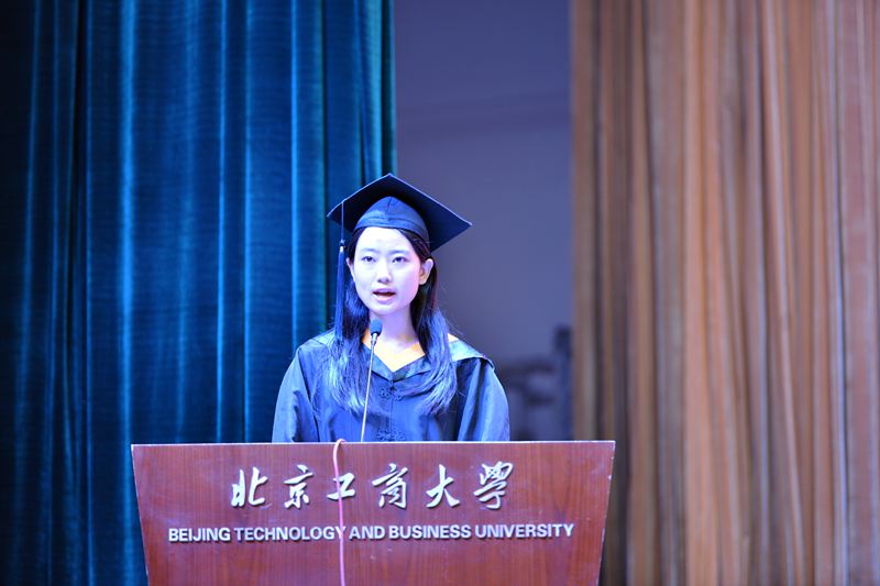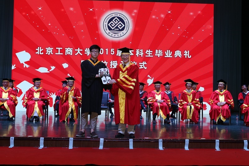 李朝鮮副校長宣讀了《北京工商大學關于2015屆本科生畢業及學士學位授予的決定》。董竹娟副書記宣讀《北京工商大學關于表彰2015屆本科優秀畢業生的決定》。2015年,我校共有2793名本科生完成全部課程,學??傆嬍谟?/span>2682名本科學士學位,學校決定授予150名本科畢業生“北京工商大學優秀畢業生”榮譽稱號;經北京市教育委員會授權批準,授予144名本科畢業生“北京市優秀畢業生”榮譽稱號。