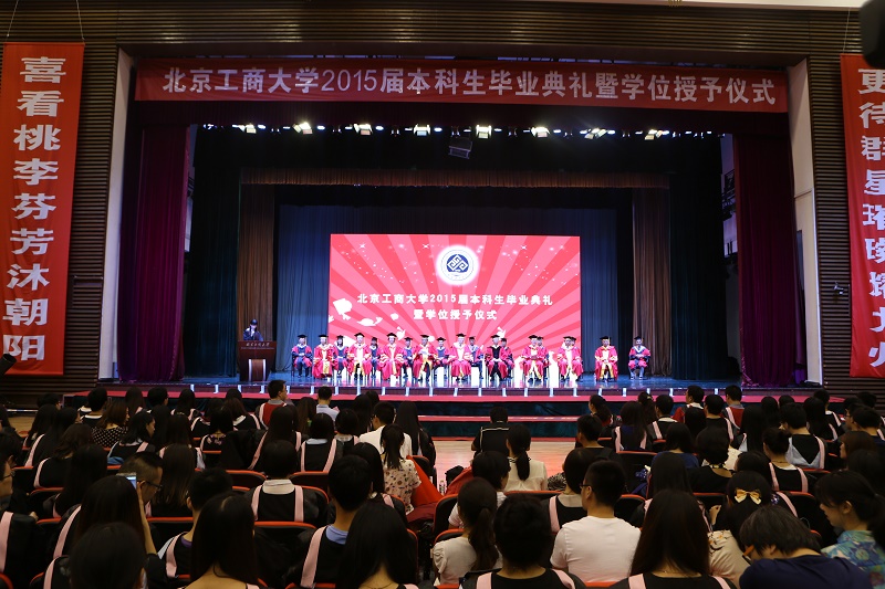 又是一年花開滿園,又是一年畢業之季。微風穿過夏日的蔥蘢,細雨交織離別的思緒,北工商的校園里青春飛揚、驪歌高唱。 6月25日,“喜看桃李芬芳沐朝陽 更待群星璀璨耀九州”的橫幅高掛良鄉文體館,北京工商大學2015屆本科生畢業典禮暨學位授予儀式在此隆重舉行。