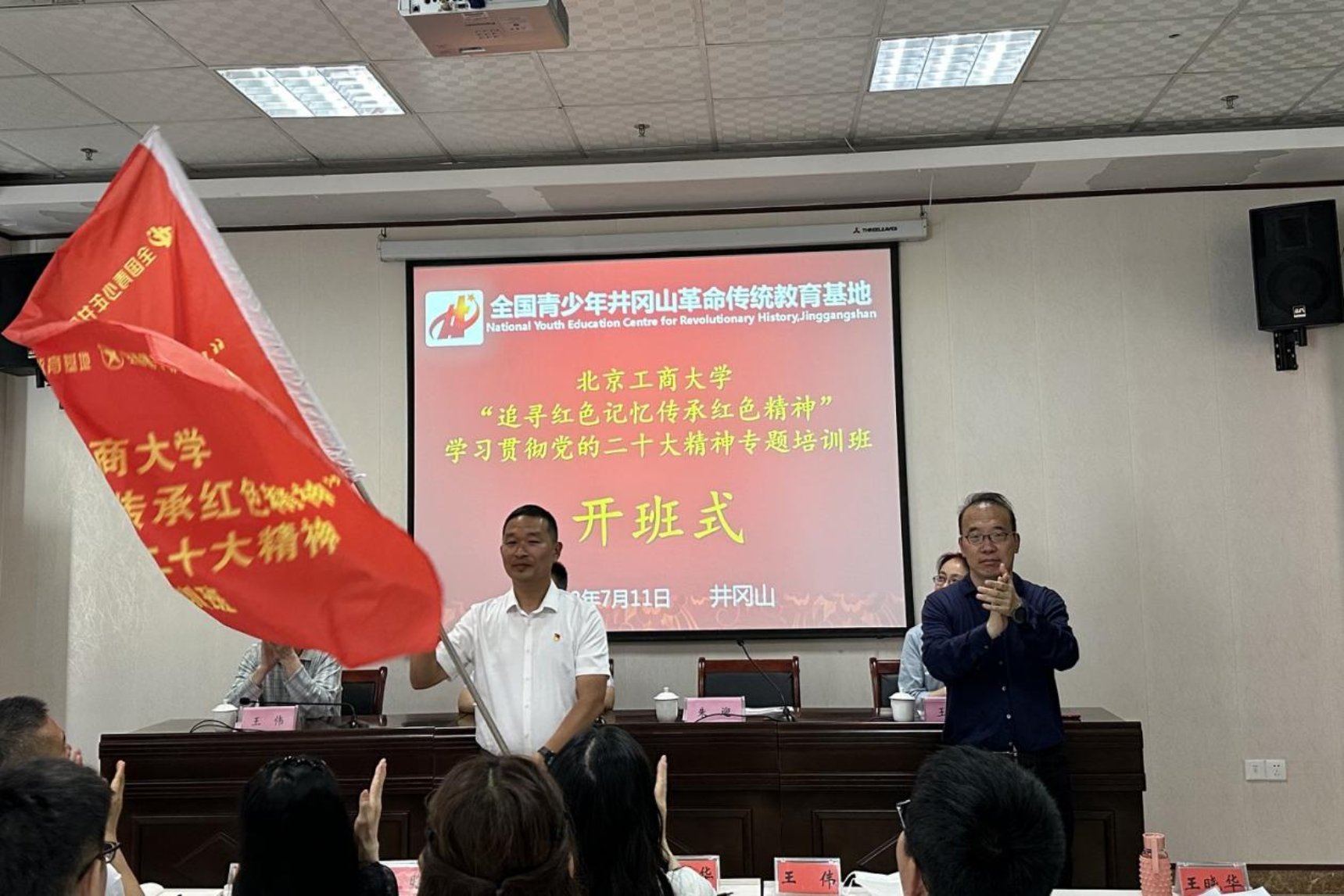 7月11日上午,培訓班開班儀式在團中央井岡山全國青少年革命傳統(tǒng)教育基地舉行。基地管理中心黨委委員、副主任朱迎致辭并為培訓班授班旗。左敏作開班動員講話。