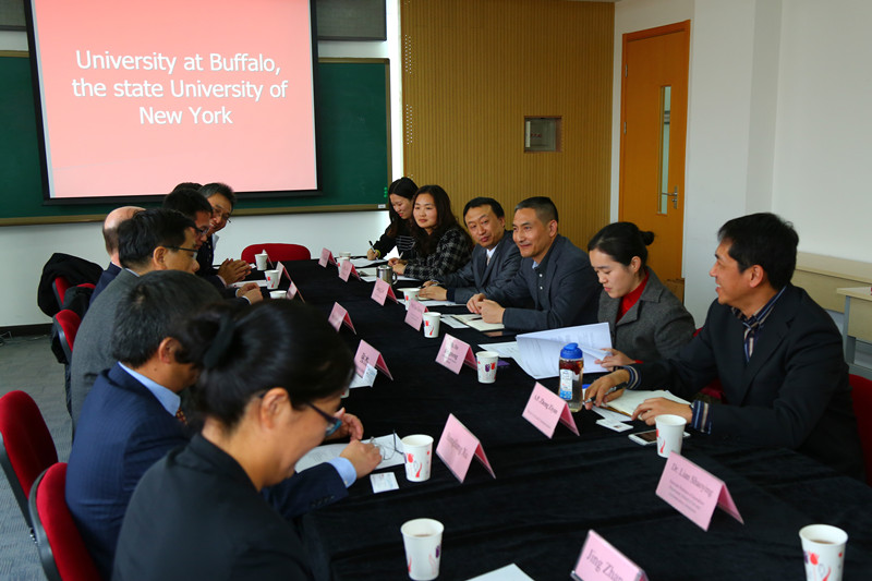 美國紐約州立大學(xué)布法羅分校自然與人文學(xué)院院長馬克.塞文森博士(Mark Severon Dr.)、中國中心主任張杰教授、數(shù)學(xué)系主任許洪良教授、藝術(shù)系蔣臨夏教授等6人與藝傳學(xué)院院長羅子明、學(xué)院黨委書記林剛、副書記劉晶、副院長鄭子云、國際處副處長賀冬萌、藝傳學(xué)院教師代表孫進、劉莉、盛鋮等參加了此次會談。