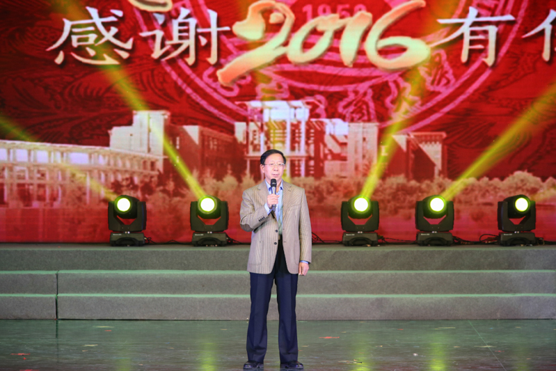 校長孫寶國院士在致辭中指出,2015年學校在人才培養、科學研究、學科建設和管理等方面都取得了不錯的成績,他代表學校黨委和行政向全校師生員工、所有關心和支持學校發展的領導、朋友表示衷心感謝。他指出,2016年是學校“十三五”的開局之年,也是學校建設高水平教學研究型大學兩步走第二步的第一年,希望全校師生員工共同努力,開創新的輝煌。他向師生員工、離退休老同志、廣大校友和所有關心學校發展的各界人士祝賀新年,并即興演唱一首《新年快樂》為大家送上祝福。