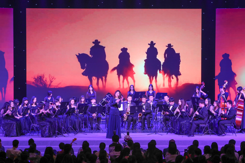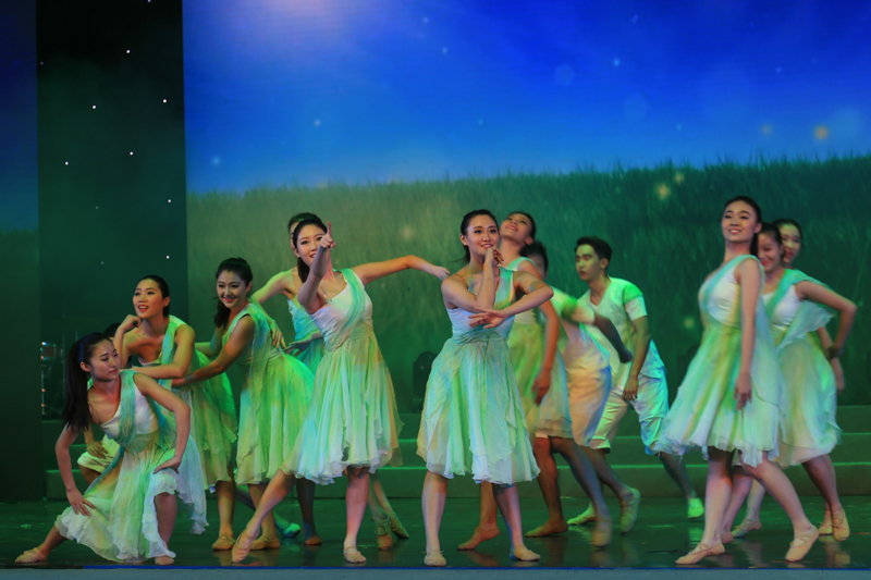 充滿青春活力的學生藝術團各展風采,為大家呈現出令人回味的精彩表演。民樂團的樂手們精心排練的《青花瓷》,絲竹聲悅耳動聽,笛音悠揚,琴聲悅耳,與充滿古韻的背景相得益彰。舞蹈團表演的榮獲北京市大學生藝術展演舞蹈類一等獎的作品《青春路上》,展示了他們激揚的活力和對未來的期望,而《step up》展示了學子們的蓬勃生機,表達出對夢想的追求。合唱團用優美清亮的聲音演繹了《Ride the chariot》、《青春舞曲》。管樂團帶來的《北京喜訊到邊塞》和《美國巡邏兵》中,悠揚的提琴演奏、動聽的笛聲、歡快的小號交織在一起,共同襯托出一片歡樂的氣氛。