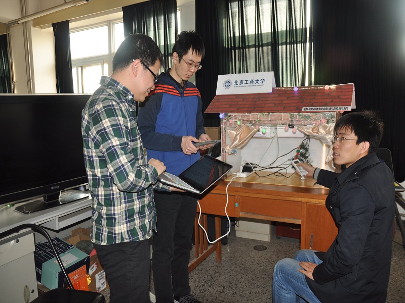 獲得特等獎(jiǎng)的@World團(tuán)隊(duì)(團(tuán)隊(duì)成員:趙宏林、郝寶智、吳文博,指導(dǎo)老師:廉小親)作品是基于物聯(lián)網(wǎng)智能家居系統(tǒng),它是一款基于IOS-App和云平臺(tái)的智能控制系統(tǒng)。該系統(tǒng)實(shí)現(xiàn)了使用App遠(yuǎn)程監(jiān)控屋內(nèi)空調(diào)、熱水器及相關(guān)設(shè)施的功能。其中云平臺(tái)提供了在線數(shù)據(jù)交換功能,使遠(yuǎn)程控制功能得以實(shí)施。用戶通過手機(jī)APP來控制家居,實(shí)現(xiàn)對家居的遠(yuǎn)程操控,控制過程中使用WiFi或GSM的網(wǎng)絡(luò)連接均可。