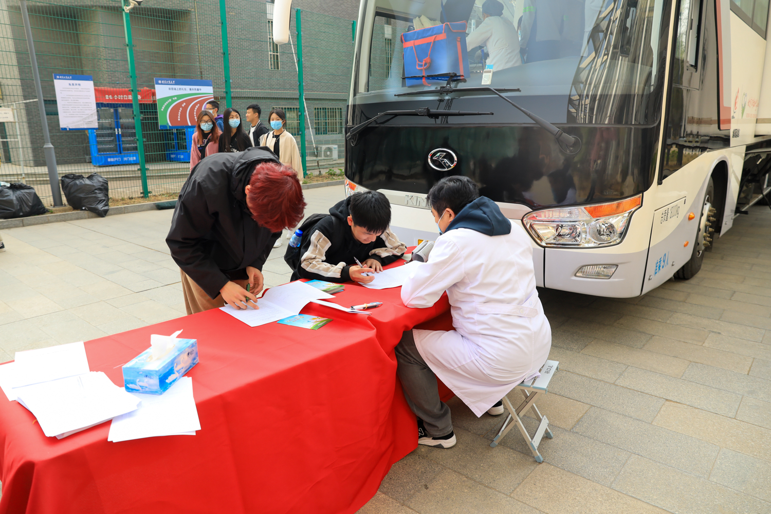 3月30日,由我校紅十字會學生分會組織的“學習二十大 熱血致青春”無償獻血活動在我校良鄉主校區舉行。北工商學子用自己的熱血傳遞愛心,以捐獻全血和成分血的形式為生命接力。學校黨委副書記李中奇、房山區獻血辦張海生主任現場慰問獻血師生,學校學生處處長呂良、副處長蓋曉慶陪同參加活動。