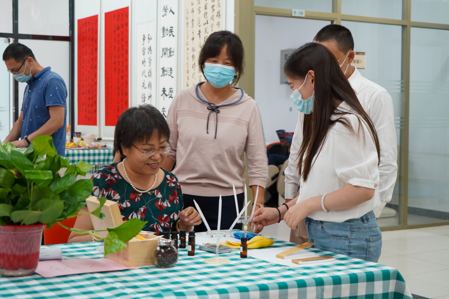 此外,不同分工會還各盡其能,發(fā)揮所長,根據(jù)學科特色設置了獨特的體驗活動:食品與健康學院的美食分享、輕工科學技術學院的調(diào)香體驗、化學與材料工程學院的皮膚檢測、經(jīng)濟學院的健康體檢、傳媒與設計學院的剪刻紙體驗活動等等。