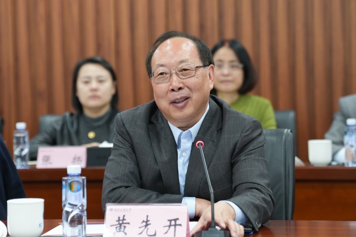 座談會(huì)上,黃先開對天津商業(yè)大學(xué)一行的到來表示歡迎,介紹了學(xué)校的歷史沿革、發(fā)展定位、辦學(xué)特色、學(xué)科建設(shè)、人才培養(yǎng)等情況。他談到,北京工商大學(xué)全面落實(shí)教育強(qiáng)國建設(shè)的戰(zhàn)略任務(wù),深入貫徹全國教育大會(huì)精神,以學(xué)校第三次黨代會(huì)精神為引領(lǐng),堅(jiān)持內(nèi)涵式、高質(zhì)量發(fā)展,圍繞“商科做強(qiáng)、工科做精、工商融合、雙輪驅(qū)動(dòng)”建設(shè)思路,全力實(shí)現(xiàn)學(xué)校食品學(xué)科進(jìn)入全國高校前三名,商科加快數(shù)字化轉(zhuǎn)型,為服務(wù)首都經(jīng)濟(jì)社會(huì)發(fā)展,推進(jìn)首都“四個(gè)中心”建設(shè)貢獻(xiàn)北工商智慧和力量。他表示,天津商業(yè)大學(xué)擁有光榮的辦學(xué)歷史,深厚的文化底蘊(yùn),扎實(shí)的辦學(xué)基礎(chǔ)和鮮明的辦學(xué)特色,希望以此次調(diào)研為契機(jī),深化兩校之間的溝通和合作,在各領(lǐng)域開展務(wù)實(shí)合作,為重塑新商科人才培養(yǎng)模式、打造高校新商科專業(yè)品牌貢獻(xiàn)合力。