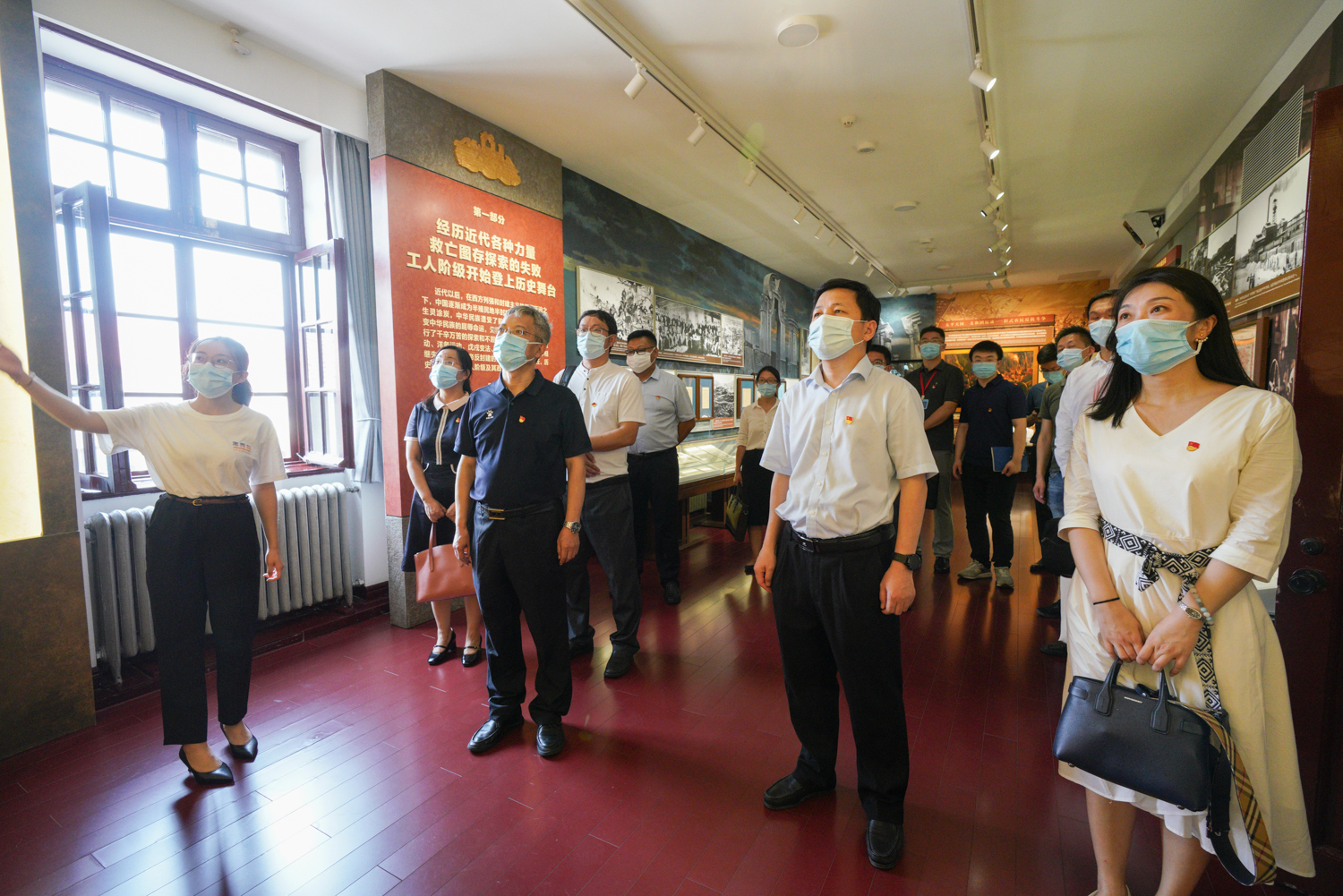 在北大紅樓前,李中奇帶領全體黨員重溫入黨誓詞。全體黨員集體參觀了“光輝偉業 紅色序章——北大紅樓與中國共產黨早期北京革命活動主題展”,重溫李大釗、陳獨秀等開展革命活動、推動馬克思主義在中國早期傳播和醞釀、籌建中國共產黨等革命歷史。