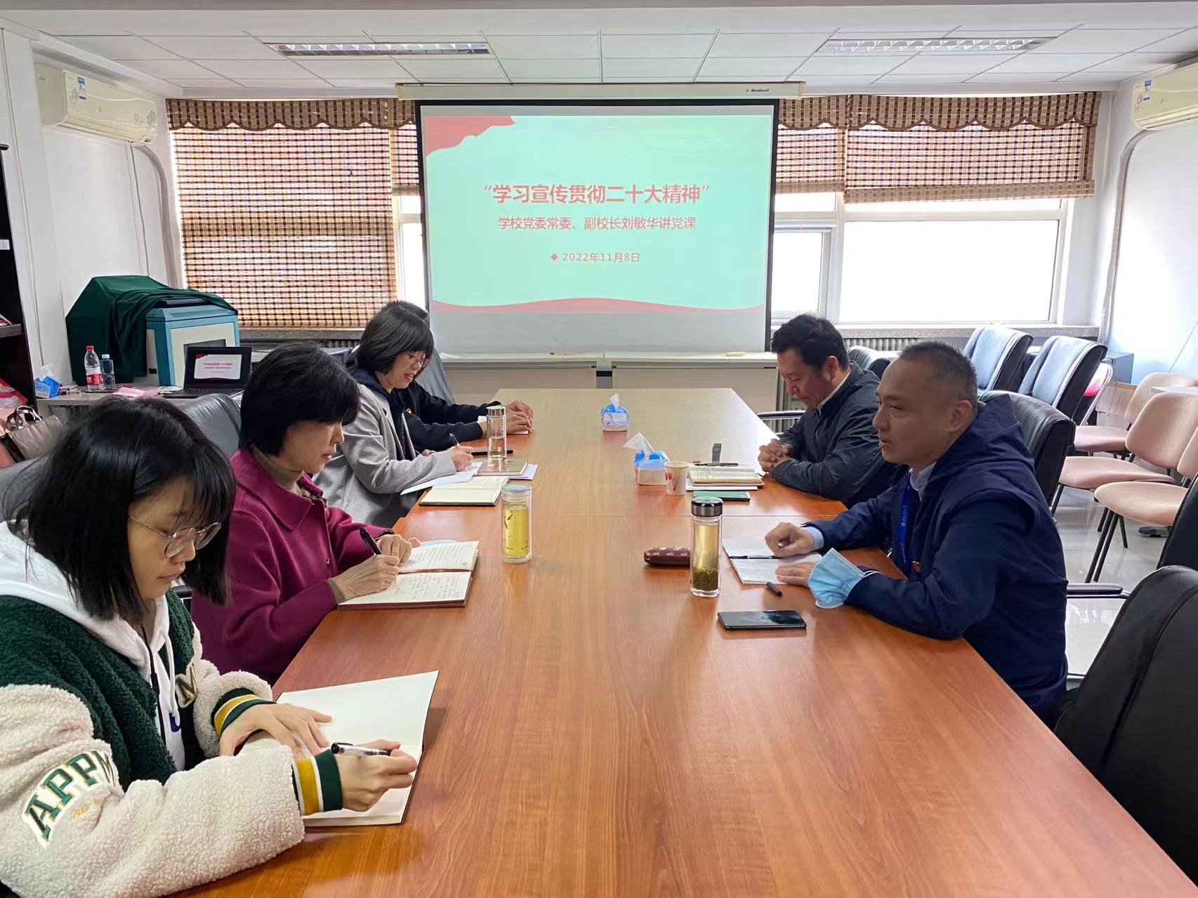 11月8日上午,學校黨委常委、副校長劉敏華以“學習宣傳貫徹黨的二十大精神”為主題講授專題黨課,工會全體人員參加學習。黨課由工會黨支部書記杜亞輝主持。