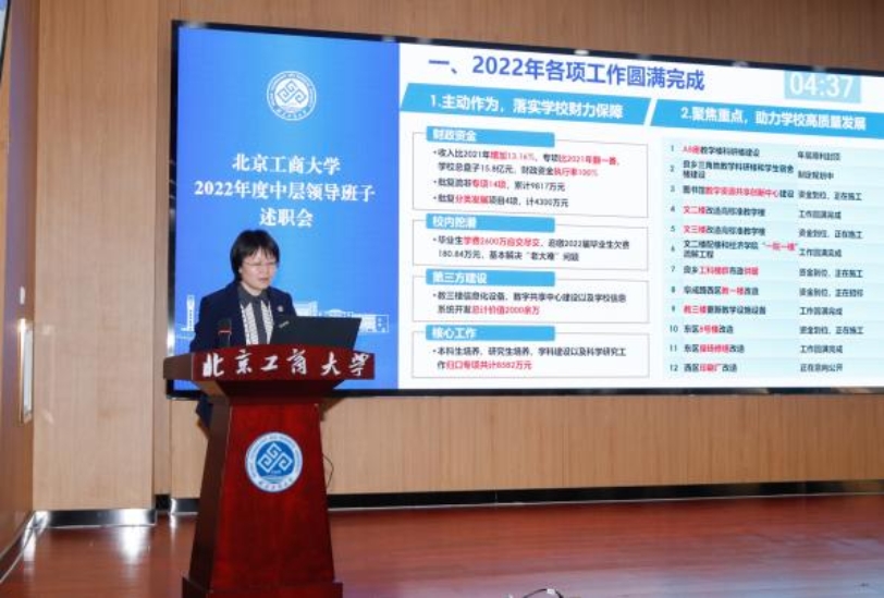 根據學校中層領導班子、中層干部考核工作安排,由各二級單位行政負責人依次代表領導班子對年度工作進行述職。各二級單位負責人根據本單位自身職責定位,圍繞學校黨政工作要點、十大重點工作任務等內容,涵蓋黨的建設、班子自身建設、黨風廉政及作風建設等方面情況,以PPT文稿演示的形式,講亮點、談問題、講關鍵、謀實招,匯報了年度工作完成情況,展示了工作業績,分析了突出問題,提出了改進措施,并對2023年重點工作進行了展望。