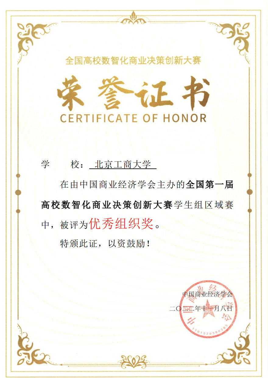近日,2022年全國第一屆高校數智化商業決策創新大賽總決賽落下帷幕。在我校商學院吳玥、王楠、王長斌,人工智能學院馬慧鋆等組成的指導教師團隊帶領下,研究生組獲一等獎5項,二等獎6項,本科生組獲一等獎1項,二等獎3項,三等獎5項,共計20個獎項,其中一支團隊進入了全國前20強。吳玥、王楠、王長斌、馬慧鋆等榮獲優秀指導教師。我校獲總決賽優秀組織獎。