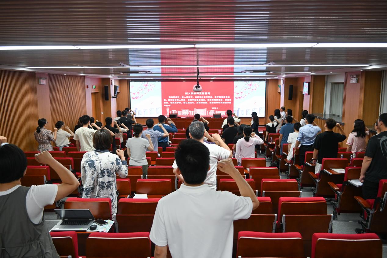 在新入職教職工代表的帶領(lǐng)下,大家高舉右手,進(jìn)行了莊嚴(yán)的師德宣誓:忠誠(chéng)黨的教育事業(yè),遵守教育法律法規(guī),履行教書育人職責(zé),引領(lǐng)學(xué)生健康成長(zhǎng),做到有理想信念、有道德情操、有扎實(shí)學(xué)識(shí)、有仁愛(ài)之心,為教育發(fā)展、國(guó)家繁榮和民族振興努力奮斗!
