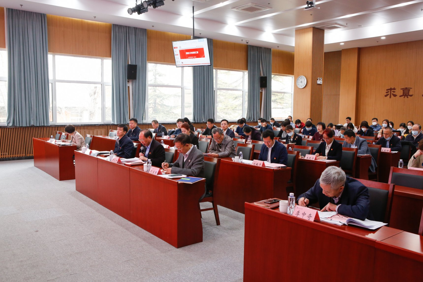 按照上級工作部署,結合學校實際,述職評議考核會沿用現場述職和書面述職相結合、“限時脫稿講+一述一評議”的形式進行。11位二級黨組織書記以PPT文稿演示的形式,聚焦黨建第一責任人職責,匯報展示了抓基層黨建工作和黨建引領保障事業發展等方面的工作成效、存在的問題和下一步工作思路,其余二級黨組織書記提交了書面述職報告。