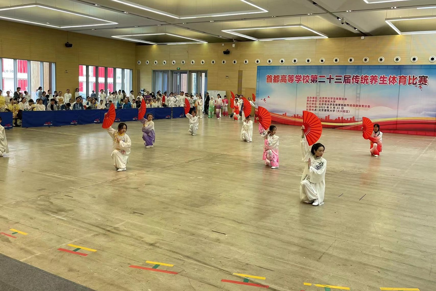 5月21日,“首都高等學校第二十三屆傳統養生體育比賽”在北京建筑大學舉行,共有來自清華大學、北京大學、中國政法大學大學、北京第二外國語學院等40所院校的400多名運動員參加了比賽。經過激烈角逐,我校武術隊在體育與藝術教學部李紅、孫輝帶領下,獲得集體導引保健功第一名、集體形體詩韻第一名和團體總分第二名的好成績。