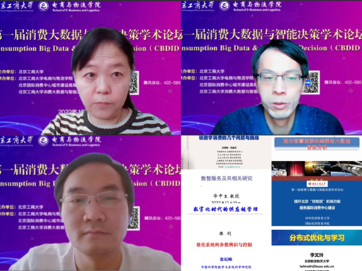 本次論壇圍繞消費(fèi)大數(shù)據(jù)理論與方法、國(guó)際消費(fèi)中心城市建設(shè)理論與實(shí)踐、電子商務(wù)與大數(shù)據(jù)分析、復(fù)雜系統(tǒng)管理與控制、智能優(yōu)化與決策、大數(shù)據(jù)與監(jiān)管工程以及數(shù)字供應(yīng)鏈與物流科技等領(lǐng)域進(jìn)行了熱烈的交流與探討。來(lái)自全國(guó)頂尖高校的十余位知名專(zhuān)家學(xué)者和業(yè)界同仁發(fā)表主題演講,百余人次同時(shí)在線觀看。