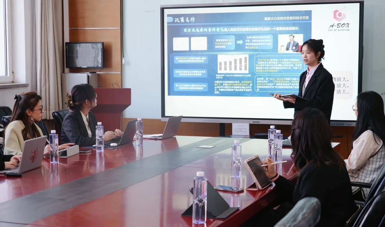 從大一初入北工商的科研小白,到“競賽達人”,王雨倩的成長之路,充滿大膽試錯的勇氣。 在挑戰杯路演前夜,她與團隊通宵調試“氣味盒子”,(一項實驗)卻意外混合出令人啼笑皆非的“螺螄粉味香水”。這個“意外”恰恰成為她科研路上的注腳。以孫寶國院士為燈塔,她將實驗室化作探索風味的戰場,用GC-MS技術解碼山西陳醋千年工藝中的“綿酸酯香”,讓古籍記載的智慧與現代科學共振。她坦言:“科研不是推翻傳統,而是用數據翻譯文明的密碼。曾以為只是研究食品加工,現在才意識到,我們是‘風味設計師+健康守護者’。就像我們研發的智能香薰系統,既能提升生活品質,又能輔助情緒治療。”