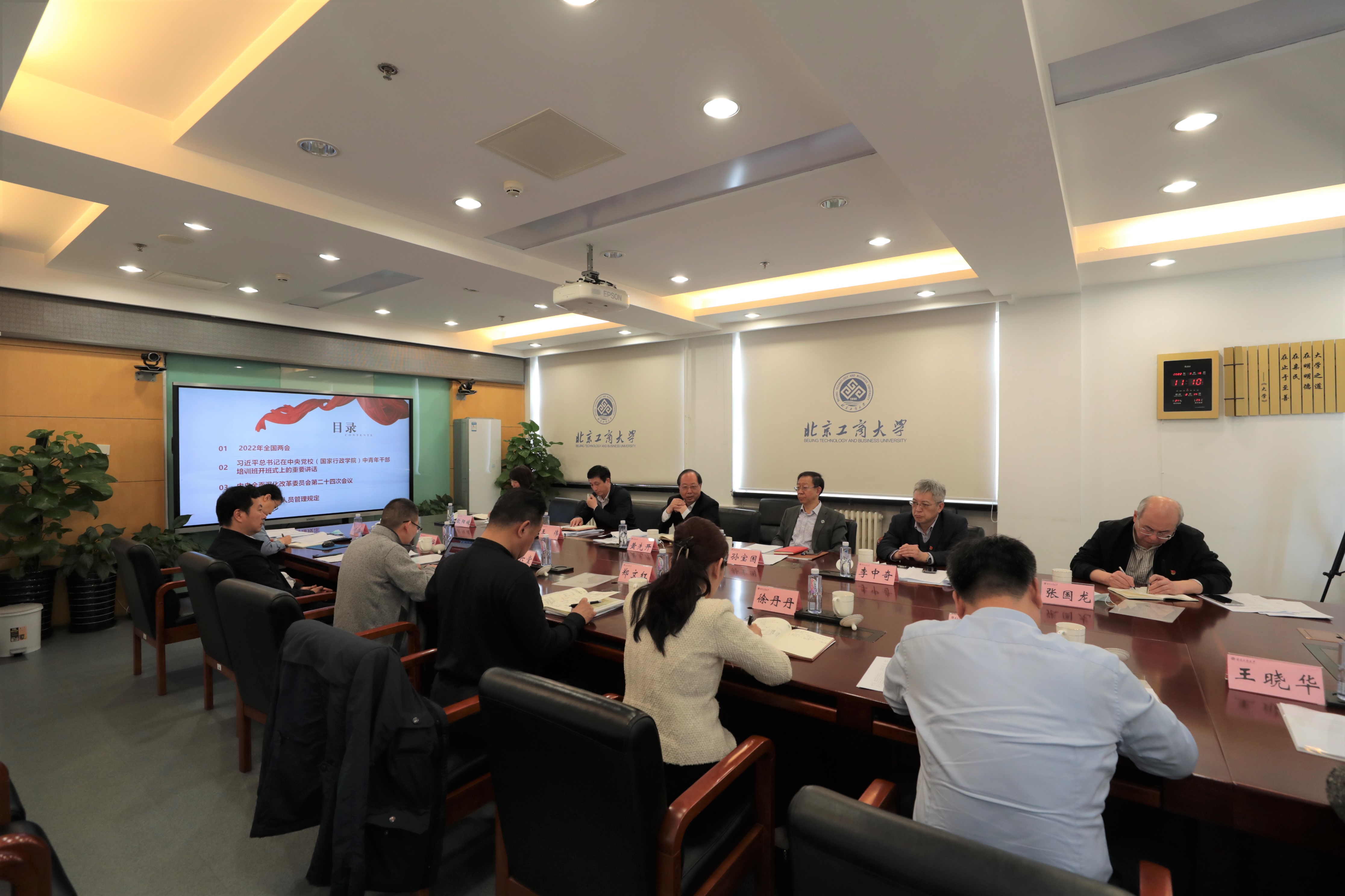 3月16日上午,學校黨委理論學習中心組召開學習會議,集中學習習近平總書記在中央黨校中青年干部培訓班開班式、中央全面深化改革委員會第二十四次會議上的重要講話精神,2022年全國兩會精神以及《事業單位領導人員管理規定》,并開展集中學習研討。學校黨委理論學習中心組成員參加會議,黨委書記黃先開主持會議。