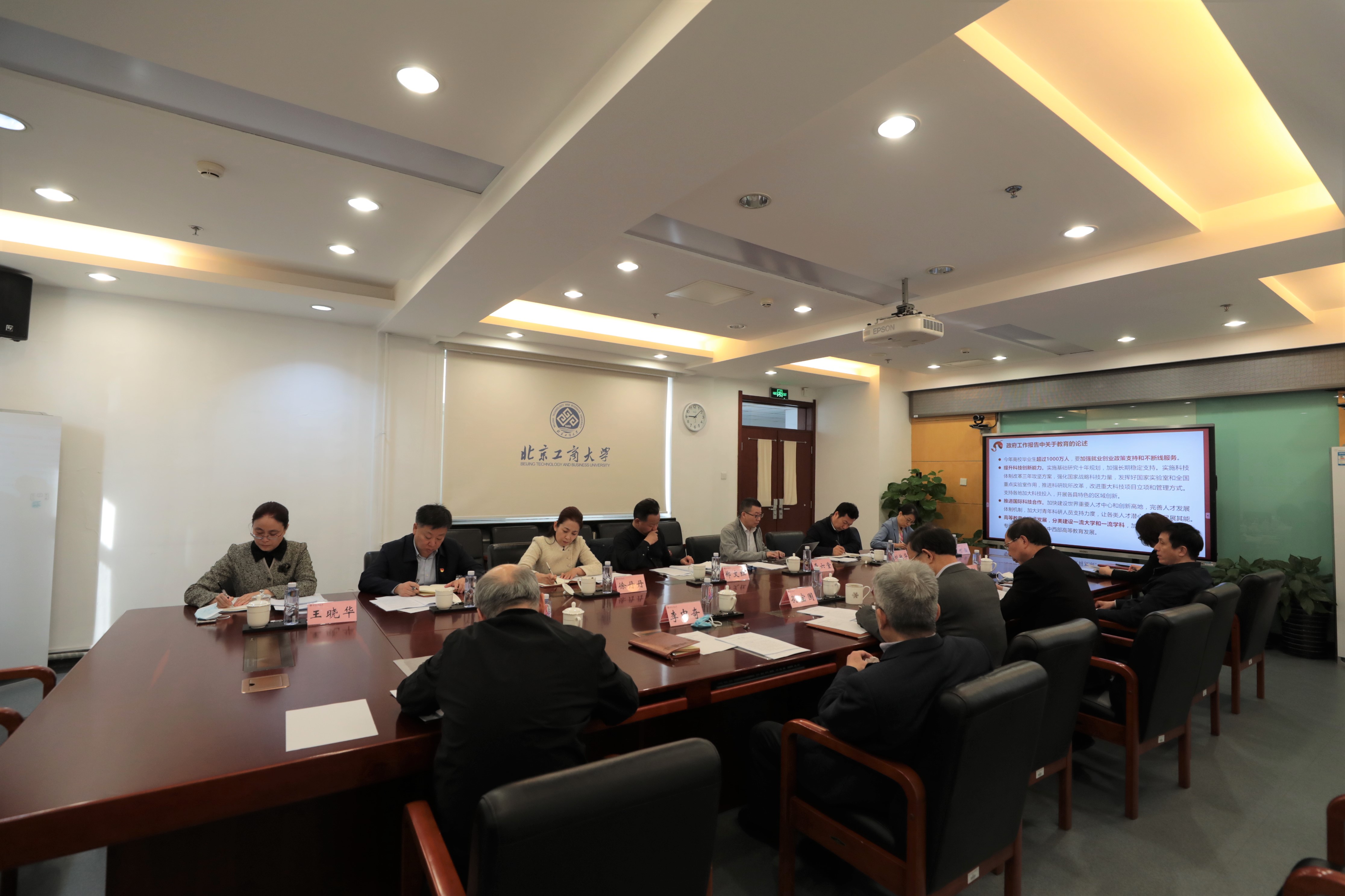 黨委書記黃先開在總結講話中指出,一是今年的全國兩會是在中國共產黨成立100周年、黨的十九屆六中全會之后,黨的二十大召開之前這一特殊時間節點舉行的一次重要會議,面對國際形勢深刻復雜變化、百年變局與世紀疫情交織疊加,習近平總書記兩會期間重要講話精神為奮進新征程、建功新時代堅定了信心,指明了方向,要深刻學習領會,堅決貫徹落實。二是要心懷“國之大者”,聚焦國家戰略,貫徹落實“四個面向”的戰略要求,吃透把準國家和行業發展戰略需要和政策導向,要準確思辨、科學應變、主動求變,全面謀劃學科布局和專業建設,結合學校發展實際,堅持商科做強工科做精,進一步加強基礎學科人才培養。三是習近平總書記在中央黨校中青年干部培訓班開班式上的重要講話飽含對年輕干部的殷切期望,為加強新時代干部隊伍建設提供了行動指南,為學校干部教育培養指明了方向和路徑,具有極強的針對性和指導性,要進一步加強對中青年干部的選拔、培養、教育、管理等工作,不斷提升干部隊伍質量。全校上下要統一思想,凝聚共識,齊心協力,領導帶頭,狠抓落實,全力推動學校各項工作取得新突破,加快推進學校“雙一流”建設,以實際行動和優異成績迎接黨的二十大勝利召開。