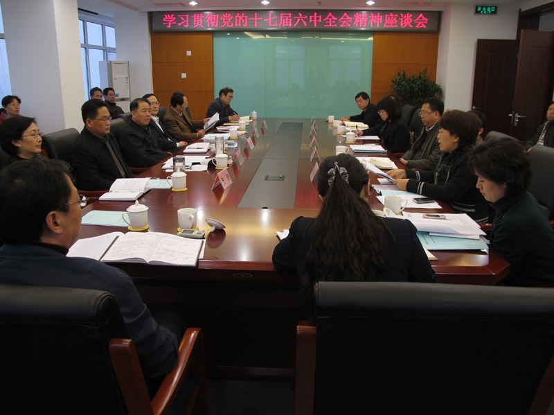 12月2日下午,學校黨委理論學習中心組(擴大)舉行“學習貫徹黨的十七屆六中全會精神座談會”。學校黨委理論學習中心組成員、各黨總支和直屬黨支部書記和有關部門負責人員參加會議。會議由校黨委書記孫堯東主持。