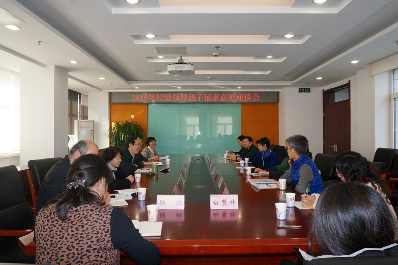 11月23日,黨委書記譚向勇就學校領導班子建設和學校事業發展召開征求意見座談會,教授代表、黨代會代表、民主黨派代表和離退休老同志參加;11月24日,校長孫寶國就學校人事工作召開征求意見座談會,學校職能部門負責人、學院院長和教代會代表參加。黨委副書記張德玉就學校學生工作、宣傳思想與安全穩定工作召開座談會征求意見建議;副校長謝志華就學校學科建設、科研、研究生與校友會工作召開座談會征求意見建議;副校長李朝鮮就學校本科教學、外事與圖書館工作召開座談會征求意見建議;副校長張耘就學校財物保障工作召開座談會征求意見建議;副校長鄭文紅就學校后勤基建服務保障工作召開座談會征求意見建議;副校長方德英就學校信息化建設工作召開座談會征求意見建議;紀委書記邱曉平就學校紀檢監察工作、工會和檔案工作召開座談會征求意見建議;黨委副書記董竹娟就學校黨建、統戰、機關作風和老干部工作召開座談會征求意見建議。參加座談會的包括基層黨組織負責人、分工會主席、教師代表、機關教工代表、學生系統教工代表、各學院教學秘書、紀檢委員、學生代表等各方面代表150名。