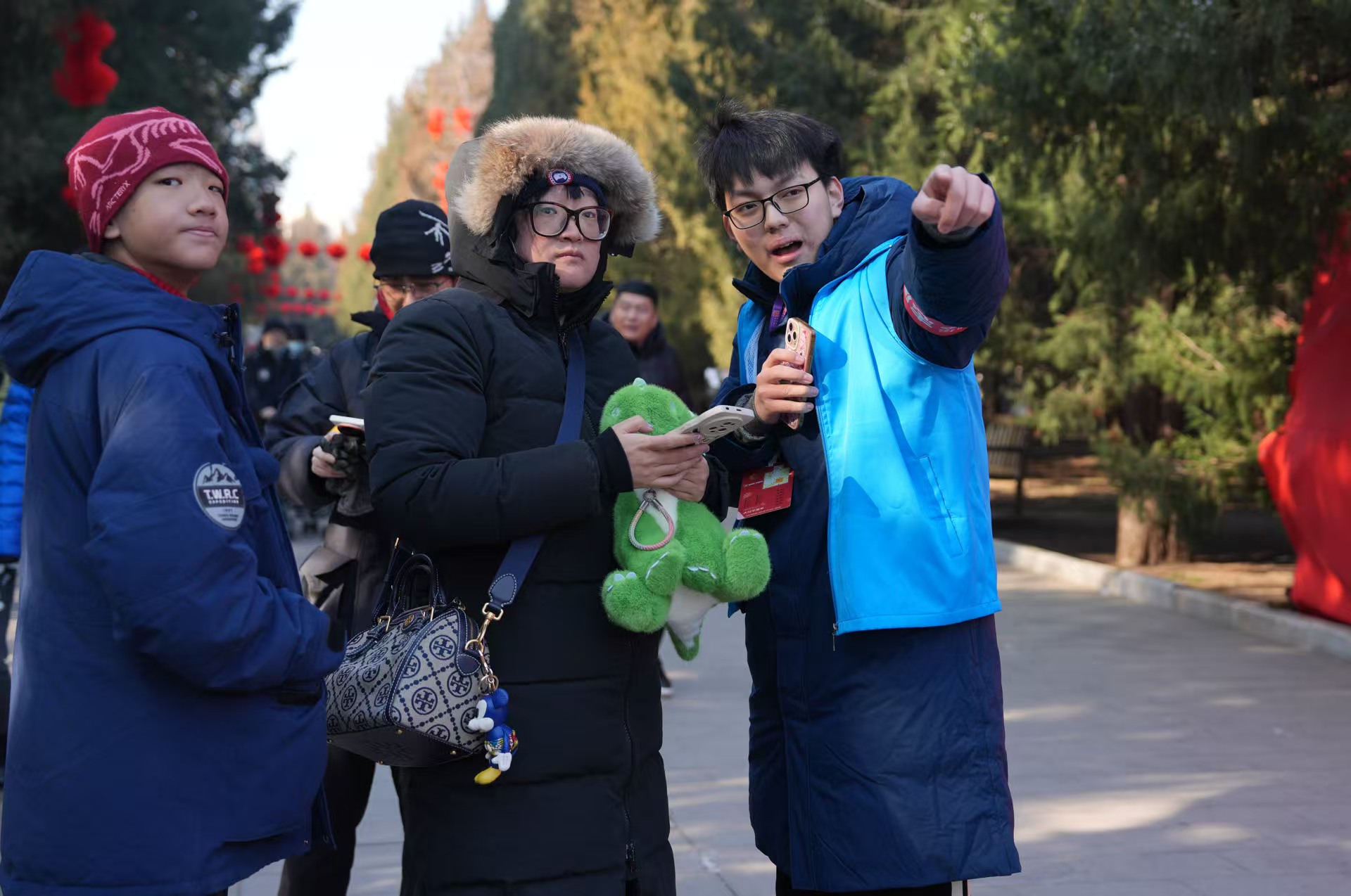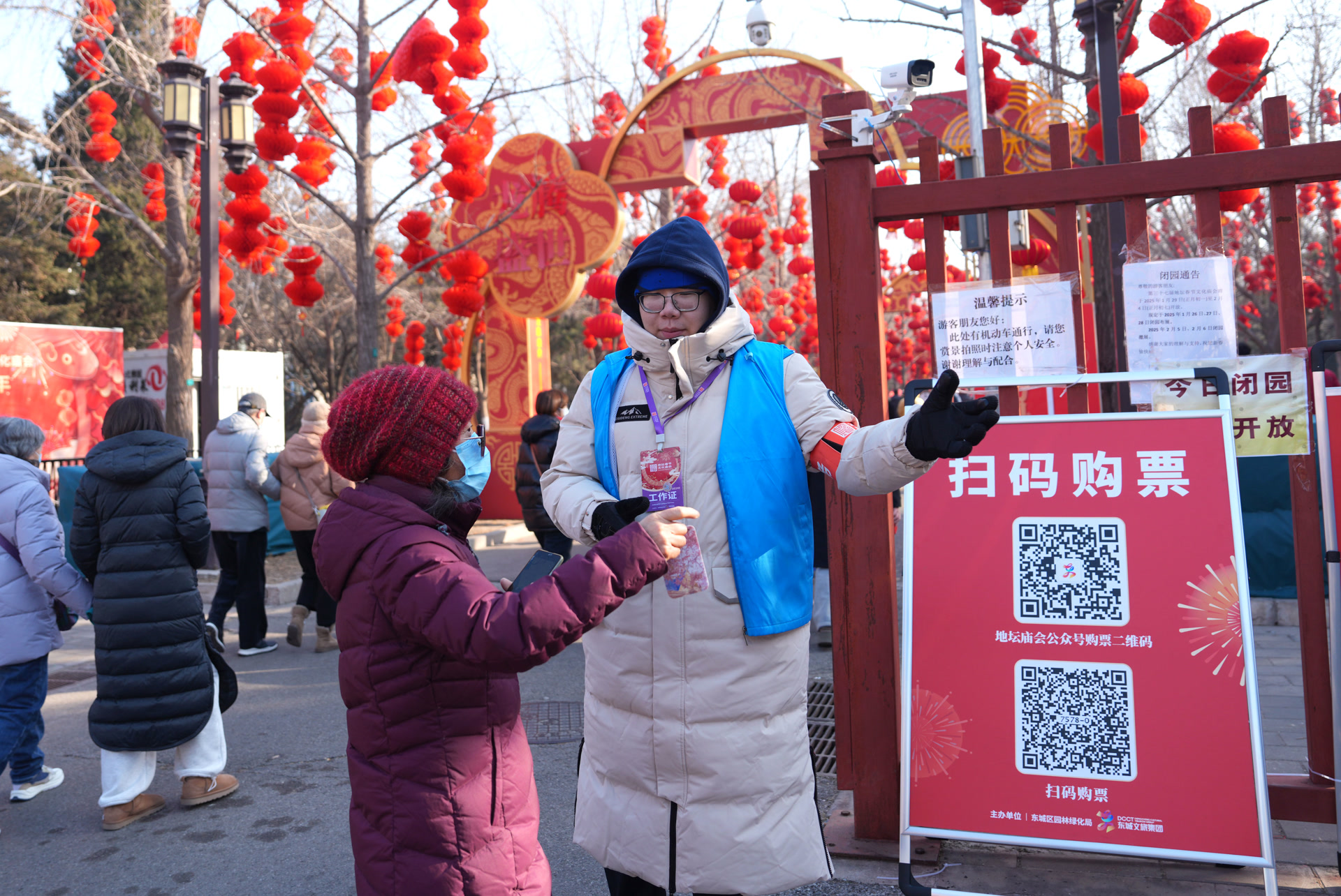 “來自比利時的喬爾夫婦,您的朋友正在聯(lián)系您,請前往游客服務(wù)中心和他會合。遇到任何問題,身穿藍(lán)色衣服的志愿者都會為您提供幫助。”大年初三10時許,地壇廟會,人頭攢動,一段流利的英文尋人播報響起。