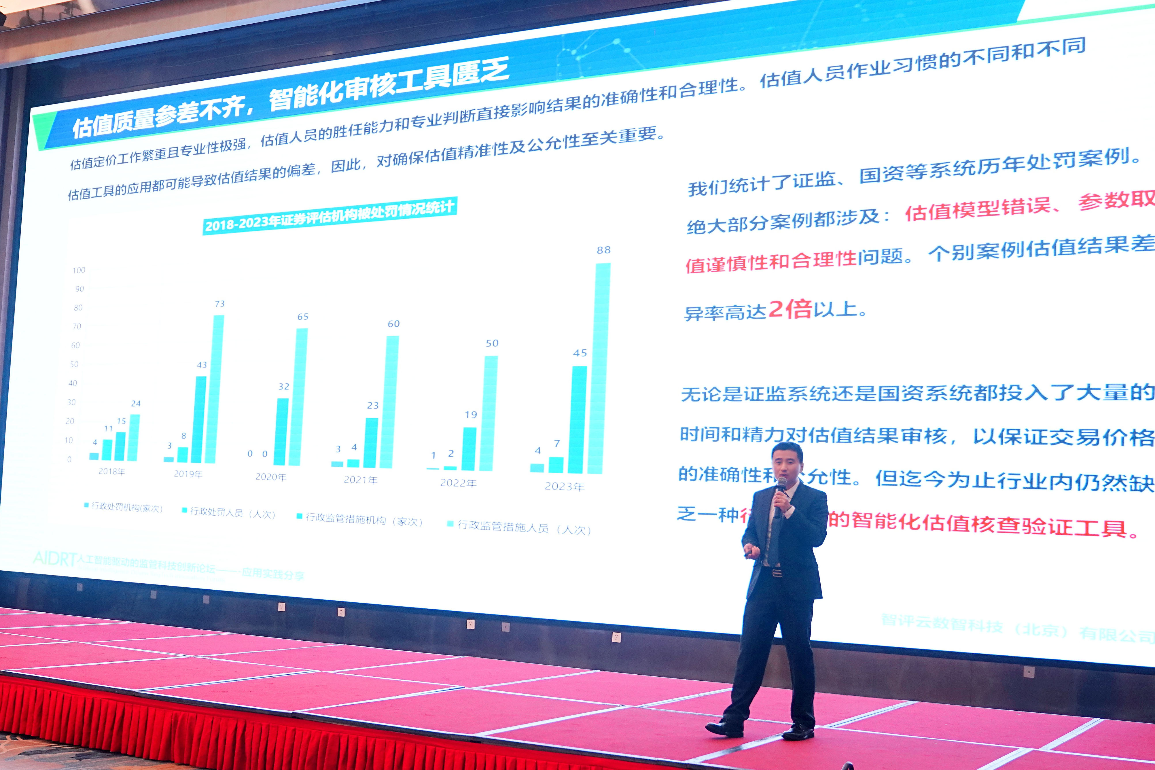 北京工商大學經濟學院院長詹新宇主持主題演講環節。北京航空航天大學譚小芬教授作了《跨境資本流動的特征和風險》的主題演講,他指出準確識別跨境資本流動的特征與驅動因素,將人工智能技術應用于跨境資本流動風險管控具有現實意義。中國資產評估協會會員信息部主任唐偉作了《數字賦能資產評估行業自律監管轉型升級》的主題演講,分享了資產評估行業在數字化轉型方面的舉措,展示了如何通過信息化技術提升行業監管的質量和效率。智評云數智科技有限公司總經理袁勇作了《科技創新驅動,助力智慧監管升級——應用實踐分享》的主題演講,介紹了智評云如何利用大數據分析和人工智能技術為資本市場的公平交易和國有資產的合理評估提供支持。北京工商大學教授韓忠明作了《人工智能在資本市場系統性風險與監管中的應用》的主題演講,他從硅谷銀行事件切入,分析系統性風險的概念界定,并建立模型去擬合和預測金融風險。信永中和會計師事務所主任會計師顏凡清作了《人工智能驅動下的審計創新》的主題演講,強調了技術創新需要結合組織管理和標準化構建以應對信息時代對審計行業的挑戰。