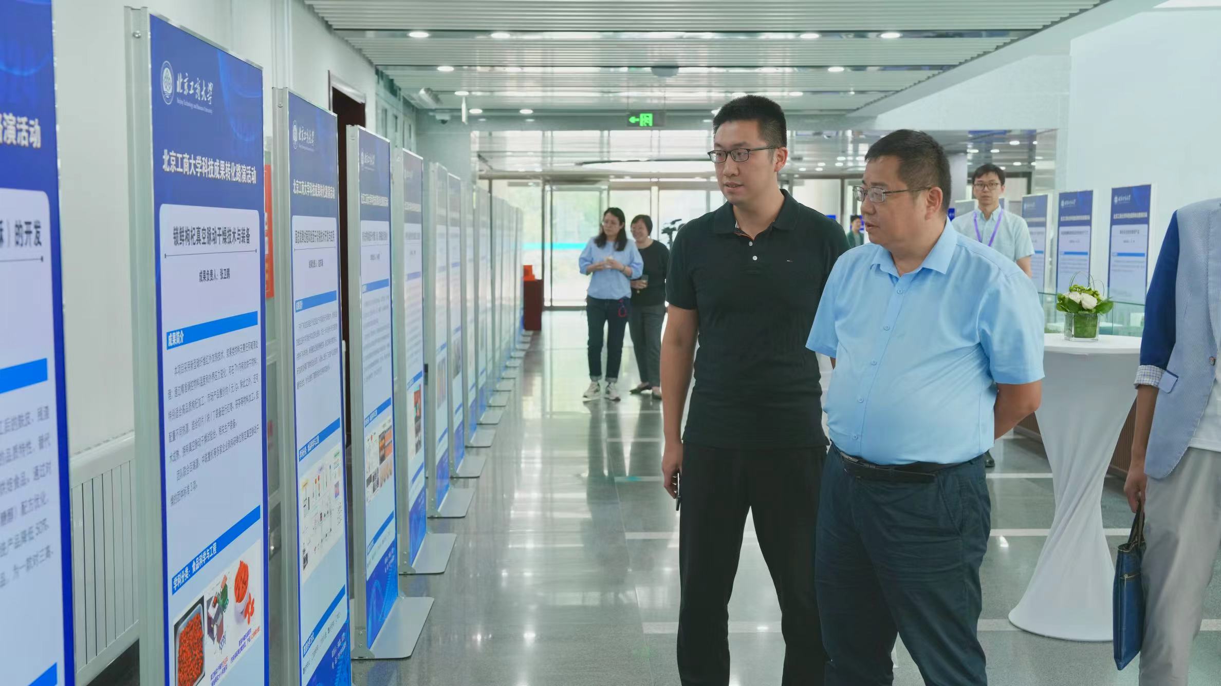 本次活動(dòng)是在北京市委教育工委、市教委及市國(guó)資委指導(dǎo)下、由北京工商大學(xué)與良鄉(xiāng)大學(xué)城管委會(huì)聯(lián)合共同舉辦,現(xiàn)場(chǎng)60項(xiàng)科技成果發(fā)布,13項(xiàng)成果路演,近100家企業(yè)參會(huì),有13項(xiàng)成果和企業(yè)達(dá)成簽約。北京市委教育工作委員會(huì)委員兼北京市教委副主任張耀天、市國(guó)資委副主任趙加凡、中關(guān)村科學(xué)城管委會(huì)產(chǎn)業(yè)促進(jìn)三處副處長(zhǎng)魏飛、房山區(qū)良鄉(xiāng)大學(xué)城管委會(huì)黨組書(shū)記、常務(wù)副主任馬達(dá)、中國(guó)石化燕山石化二級(jí)協(xié)理員、北京市科協(xié)常委程嘉猷、房山區(qū)經(jīng)信局副局長(zhǎng)孫穎、房山區(qū)商務(wù)局副局長(zhǎng)鄧紫微等嘉賓出席活動(dòng),學(xué)校黨委書(shū)記黃先開(kāi)致辭,學(xué)校各職能部門(mén)相關(guān)負(fù)責(zé)人及教師代表參加活動(dòng)。學(xué)校黨委常委、副校長(zhǎng)毛新述主持路演活動(dòng)。