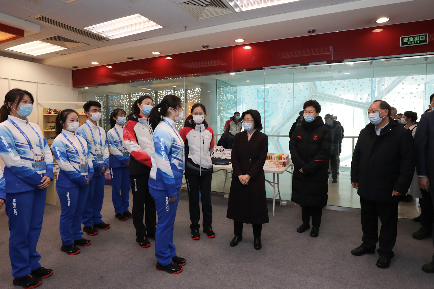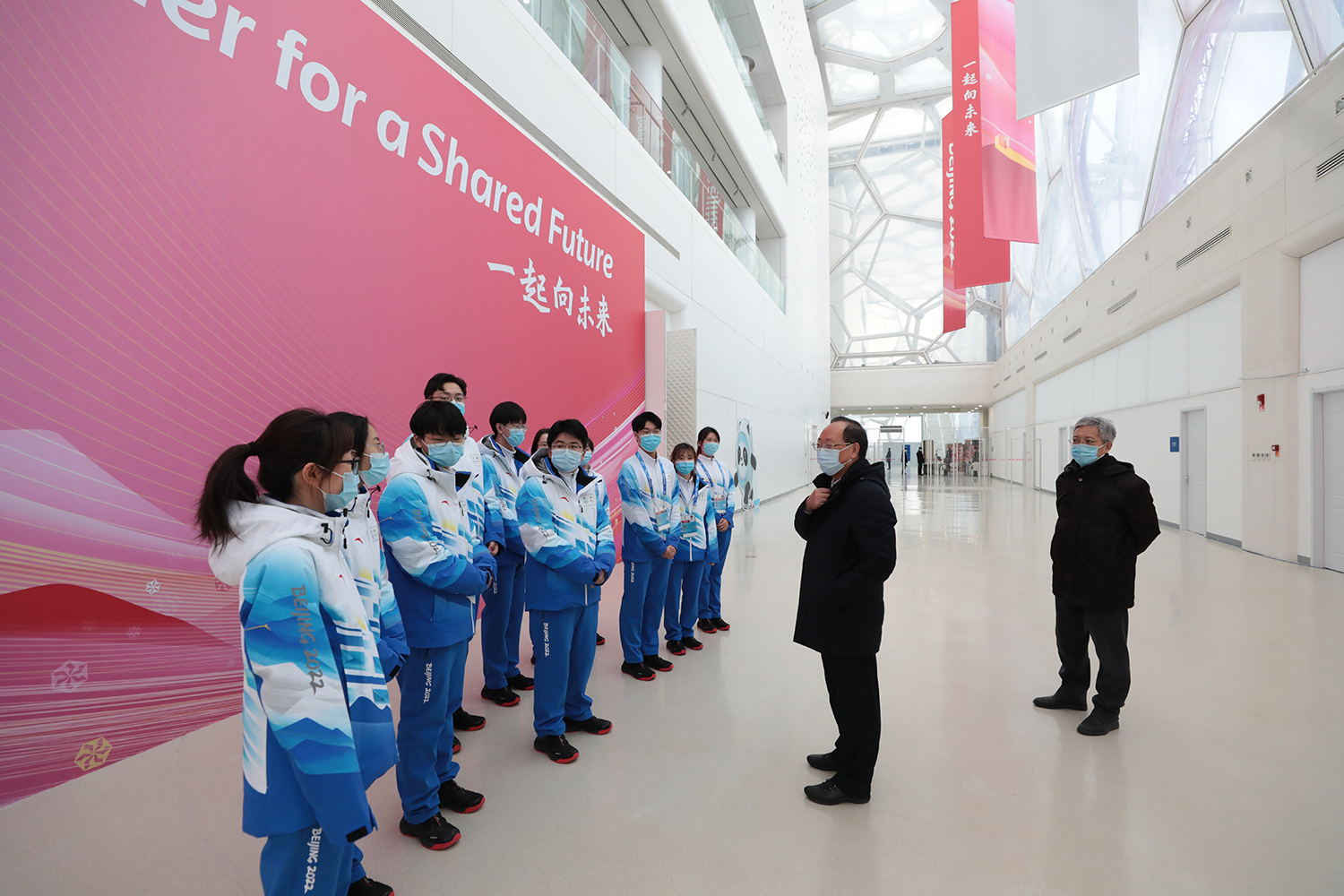 2022新年伊始,北京冬奧會籌備進入了“壓線沖刺”階段。1月3日,距北京2022冬奧會開幕式倒計時30天之際,市委常委、組織部部長、人力資源與志愿者工作組組長孫梅君來到國家游泳中心親切看望志愿者骨干。北京市委組織部主持日常工作副部長王建中,北京冬奧組委志愿者部部長滕盛萍 ,副部長張秀峰、張麗娜,團市委書記李軍會、副書記李健,北京工商大學黨委書記黃先開、副書記李中奇,北京大學黨委副書記、副校長、醫學部黨委書記陳寶劍,國家游泳中心場館運行團隊主任張杰,學校冬奧保障專班成員單位負責人一同參加慰問。