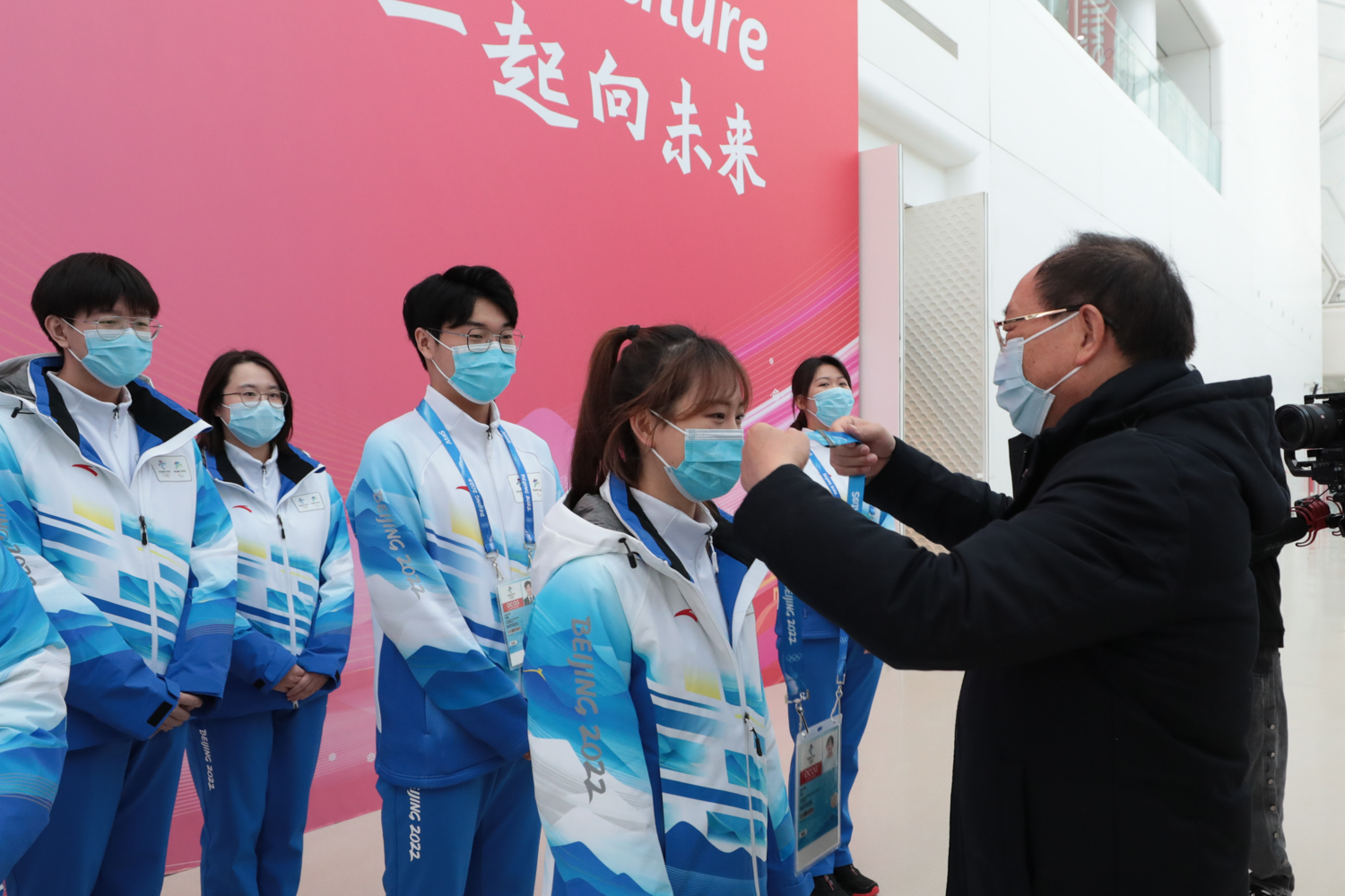 黨委副書記李中奇向志愿者贈送了暖心物資,詳細了解了志愿者們的衣、食、住、行等方面保障情況,李中奇副書記勉勵志愿者要體味校徽中“三品”中的深刻涵義,以優質的服務水平和昂揚的面貌踐行志愿精神;在工作過程中不斷提升綜合素質,聽從指揮,甘于奉獻,掌握工作規律,團結協作,用最完美的服務、最精彩的表現代表中國溫暖世界;同時希望我校志愿者可以經受重重考驗,圓滿完成志愿服務任務,并及時向學校反饋工作情況,反映保障需求,學校永遠是冬奧志愿者堅強的后盾!