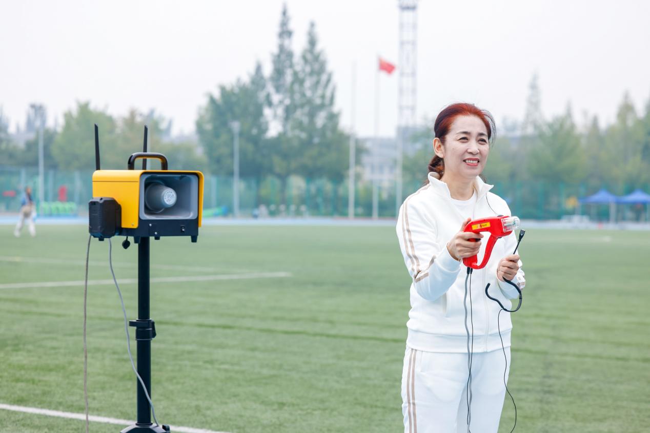 學校黨委常委、副校長徐丹丹宣布運動會開幕并為女子100米決賽鳴槍。