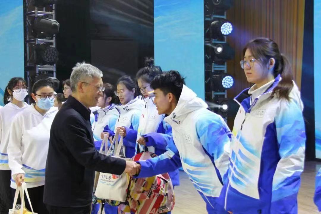 學校高度重視對冬奧志愿者的服務保障工作,建立健全“大后方”機制,為志愿者在冬奧期間的學習生活做了充分的準備和周密的安排,解決學生后顧之憂。會上,校黨委副書記李中奇為志愿者代表發放學校為全體冬奧會志愿者精心準備的物資激勵包,給予我校冬奧會志愿者深深鼓舞與溫暖關懷。