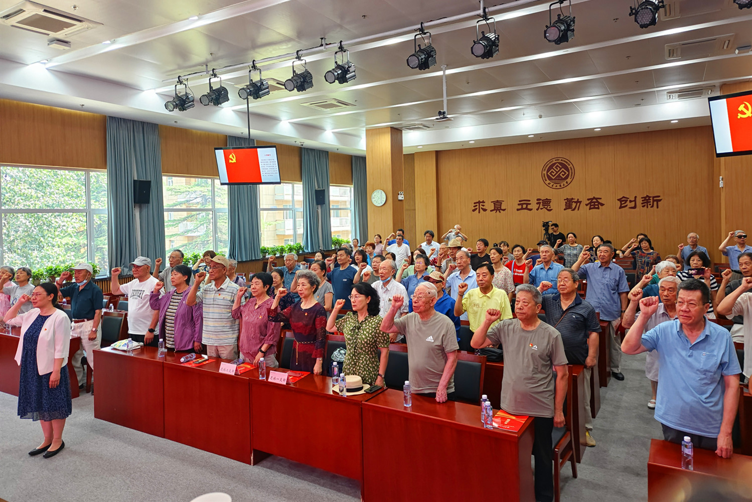 最后,全體人員起立,由離退休黨委書記王紅英領誓重溫了入黨誓詞。與會老黨員一致表示,在紀念中國共產黨成立103周年到來之際,此次專題講座將更加激勵大家,要以實際行動,詮釋老而彌堅、壯心不已的豪情,以赤子情懷,踐諾楓葉正紅、甘于奉獻的入黨初心。矢志一流,為推進學校“雙一流”創建和高水平研究型大學建設貢獻銀發力量。