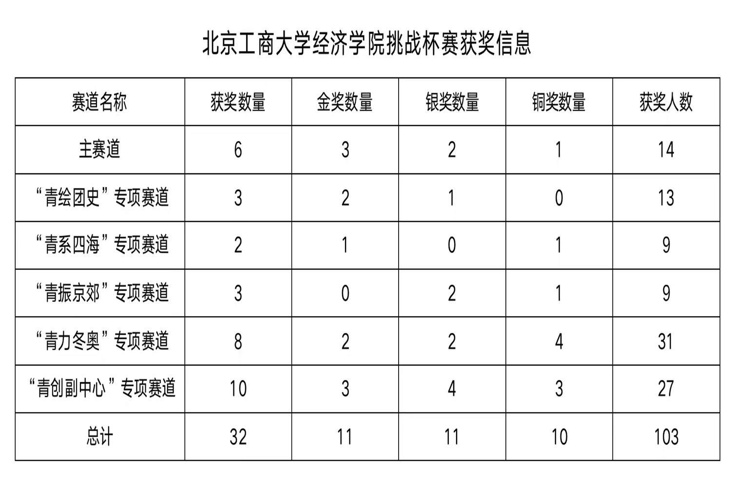 在本次“挑戰(zhàn)杯”首都大學生創(chuàng)業(yè)計劃競賽中,經(jīng)濟學院學子所參與的項目共有32個作品獲獎,其中金獎11項、銀獎11項、銅獎10項,共103人次獲獎,獲獎作品數(shù)量、金獎數(shù)量和獲獎學生人數(shù)均取得歷史性突破。