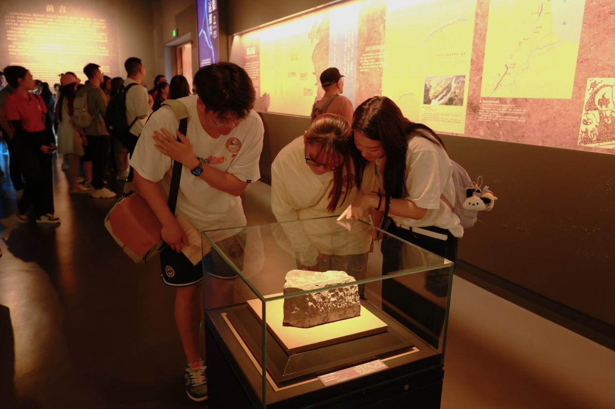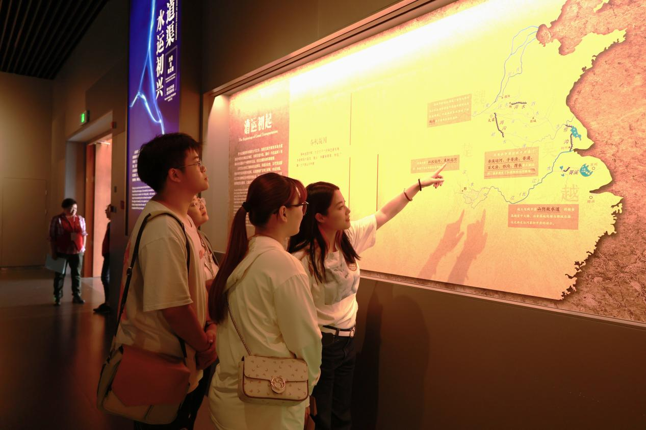 在北京大運河博物館,見證運河2500年歷史的水波淼淼,文脈悠悠。在講解員的帶領下,師生仔細參觀了“京華通惠 運河永濟——北京與大運河歷史文化陳列”展覽。透過1000多件文物、藝術品縱觀大運河發展演變史與其沿線人文歷史內涵。“我仿佛沿著大運河走過了一段悠長的歲月”,巴婧同學說,“作為一名大學生,應當弘揚運河文化,講好中國故事,傳遞中國聲音。”
