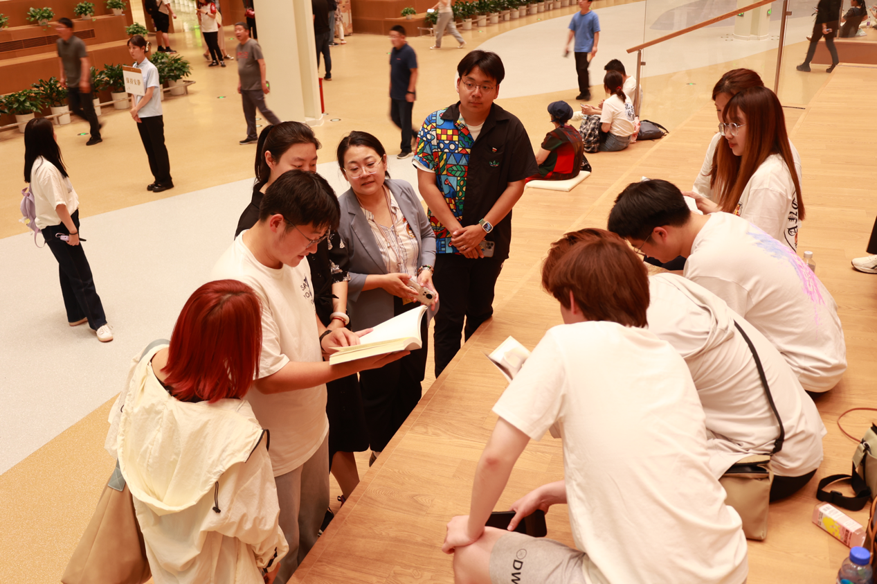 北京城市圖書館是打卡的最后一站,窗外狂風驟雨,窗內書香雅韻。場館采用運河波紋的建筑設計,給這座知識空間增添更多底蘊。步入圖書館,能欣賞到通透璀璨的建筑美,體驗愜意雅韻的閱讀美,感受科技賦能的智慧美,元宇宙體驗館、AI無感借還,師生在實踐中體驗著知識文匯與數字科技的結合,在俯仰之間感受文脈傳承的震撼。