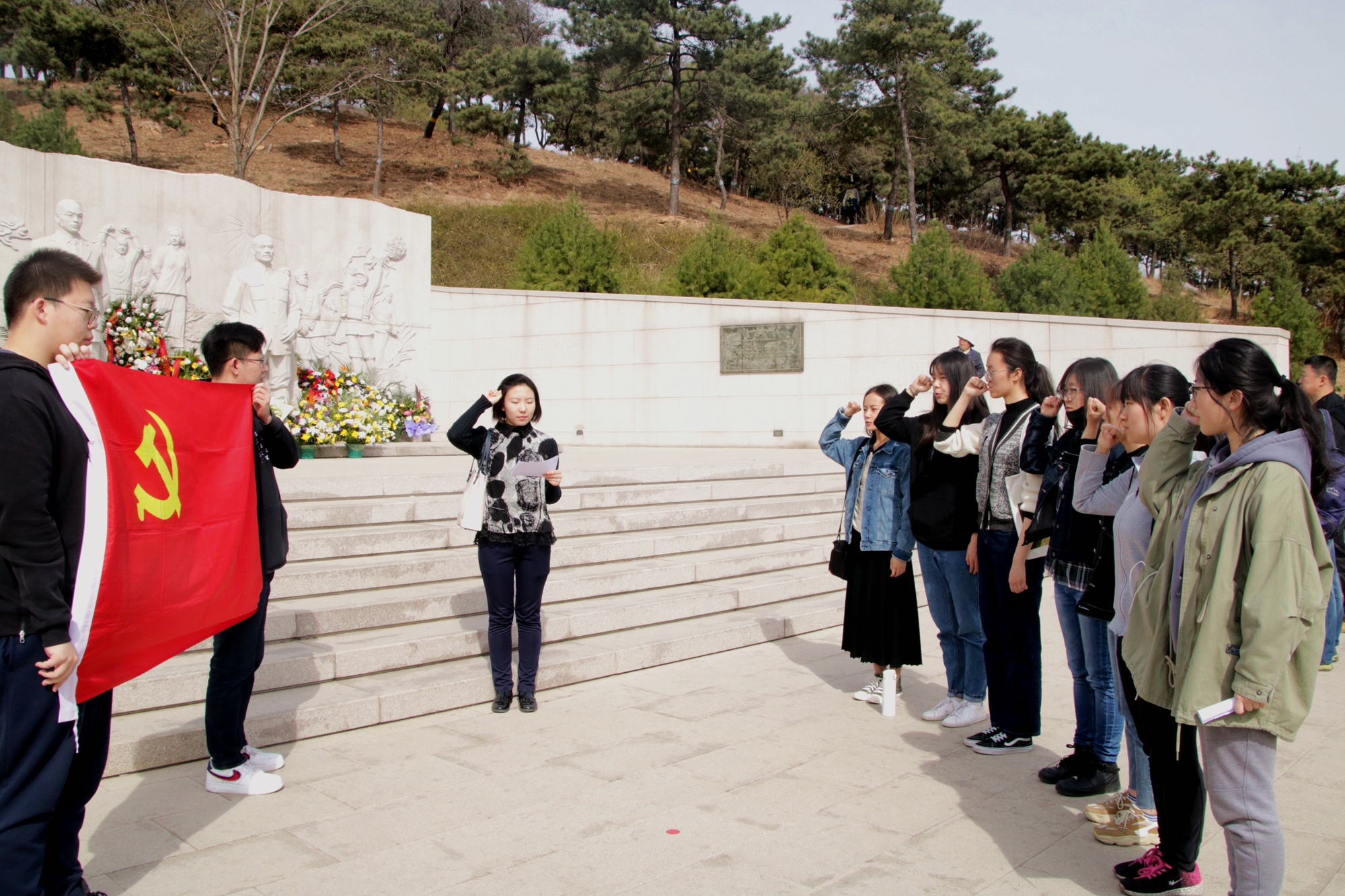 值清明節之際,外國語學院為弘揚愛國主義精神,增強學生社會責任感和歷史使命感,組織學生黨員、班長、團支書、團員代表前往北京西山無名英雄紀念廣場,黨、班、團協同開展緬懷革命先烈活動,整個活動過程莊嚴肅穆,井然有序。在革命烈士紀念碑前,舉行簡短而隆重的悼念儀式,全體學生彎腰鞠躬向烈士們致以哀思,用精神和行動向革命先烈們致敬。面對烈士紀念碑,學生黨員和團員向烈士獻詞,并重溫入黨、入團誓詞,號召每位同學時刻牢記誓詞,嚴于律己,勤奮學習,將本次儀式轉化為內心的力量,銳意進取,不斷進步。參觀過程中,同學們結合前期的學習研究,開展“緬懷革命先烈 做新時代新青年”雙語宣講活動。依托專業優勢,講述西山廣場歷史背景,解讀紀念碑碑文,回顧革命烈士光榮事跡,字里行間,流露堅定的愛國信念。