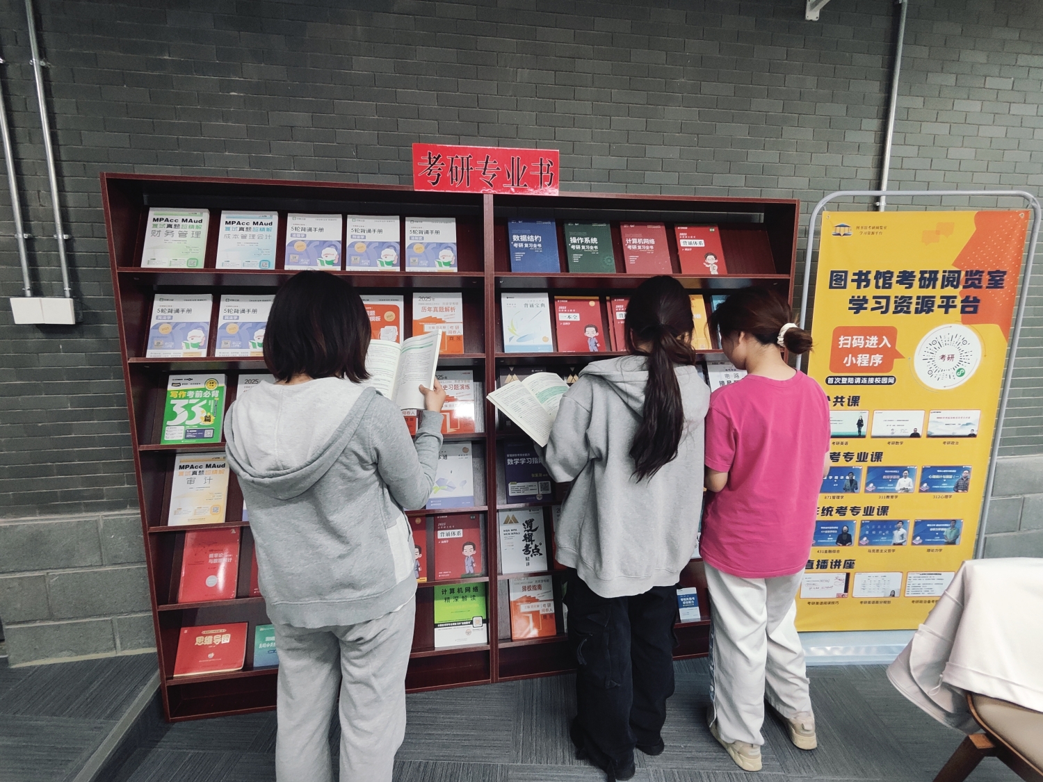 近日,圖書館在良鄉校區文二樓一層自習室內設置了考研圖書專架,放置了218冊考研學習圖書,內容涵蓋考研英語、考研數學、考研政治等科目,為考研學子提供寶貴的第一手資料和實用的備考寶典。讀者們可前往自行取閱,閱畢后及時將書放回書架,供下一位讀者閱讀。本批圖書由高校圖書館考研閱覽室學習資源平臺提供,該平臺匯集了全國十多家考研培訓機構、上百位一線考研名師以及數十家考研圖書出版商等考研相關資源供應方,旨在為全國高校在校考生打造一個一站式的校內考研學習基地。通過線上線下相結合的服務方式,匯聚5000余小時的最新全年課程資源,300多品類各個階段的考研電子版復習資料,以及多項考研全流程服務等,打通考研大學生初試復試各個環節,助力大學生考研無憂。目前該數據庫已在我校開通試用,歡迎同學們積極使用。